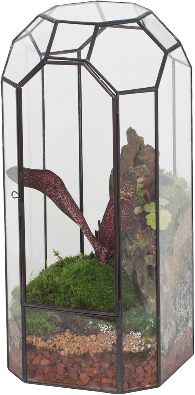 - The glass terrarium with a swing door to keep dryness / moisture in, it can create a separate environment inside for tropical or desert plants. suitable for succulent, cacti, small tropical plants, miniature fairy garden