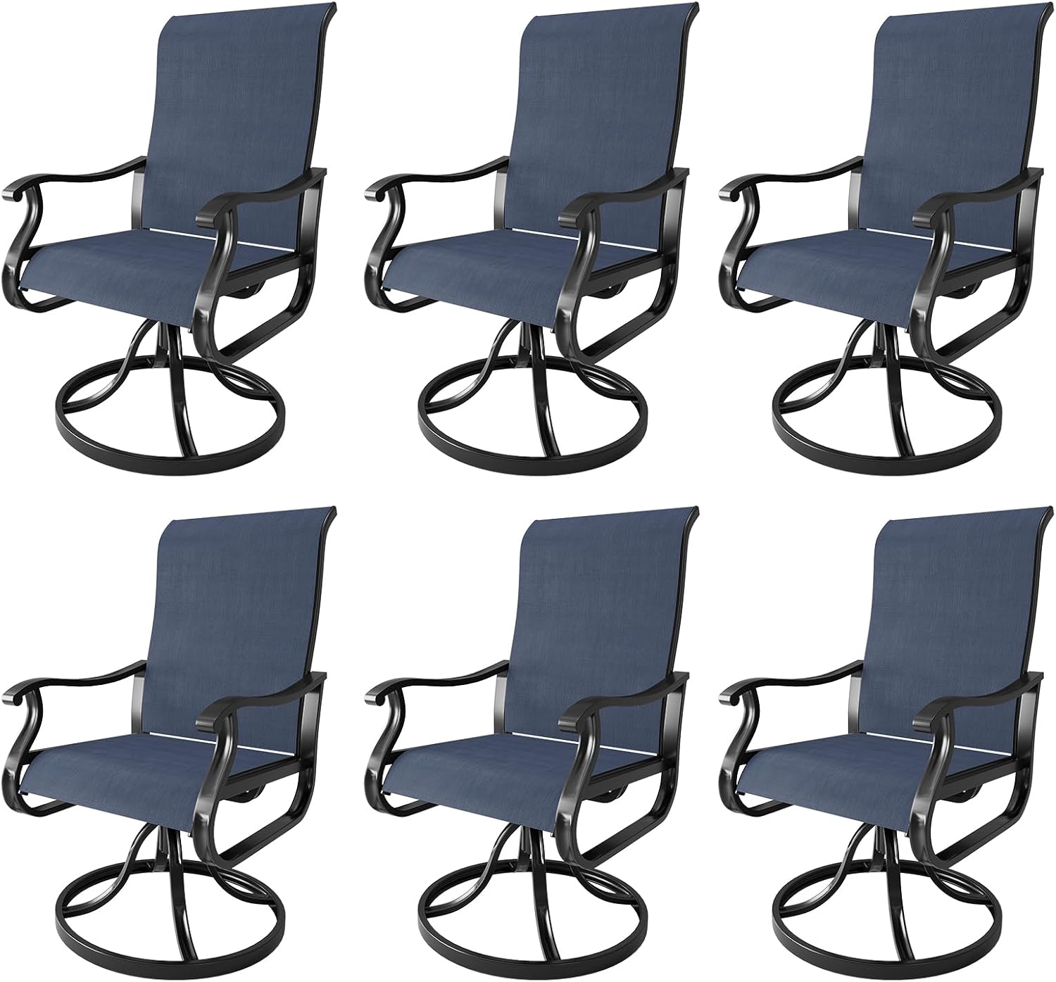 Amopatio Patio Swivel Chairs Set of 6, Outdoor Swivel Rocker Dining Chairs with All Weather Textilene High Back & Metal Frame, for Backyard Deck Lawn Garden, Navy Blue