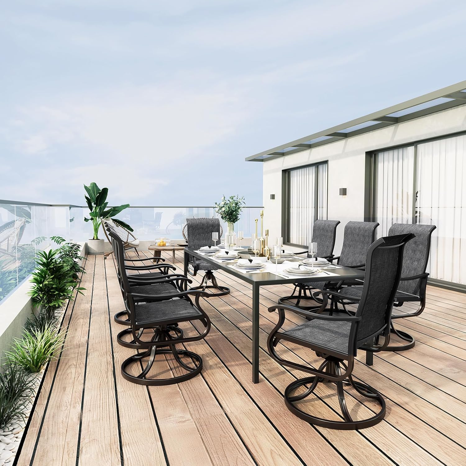 Amopatio Patio Swivel Chairs Set of 8, Outdoor Swivel Rocker Dining Chairs with All Weather Textilene High Back & Metal Frame, for Backyard Deck Lawn Garden, Dark Grey
