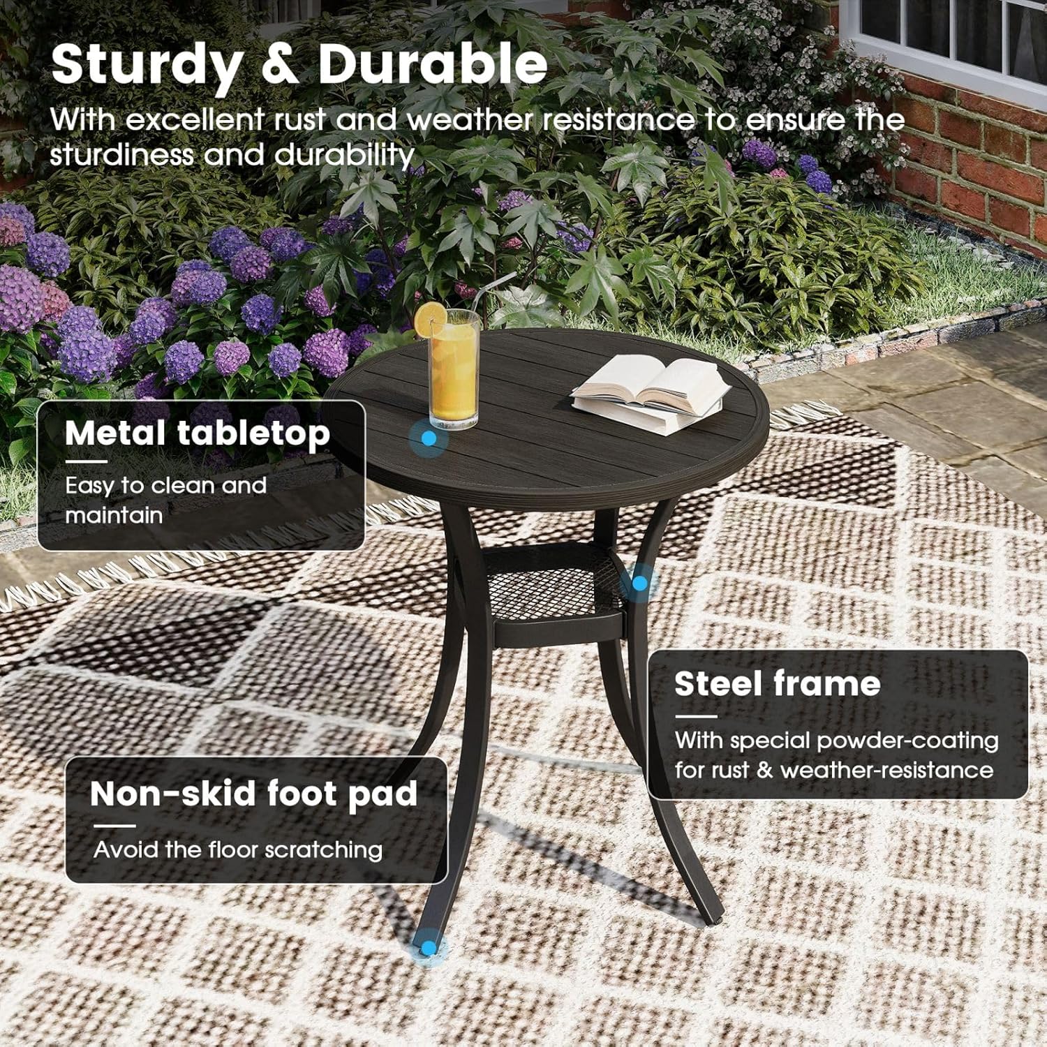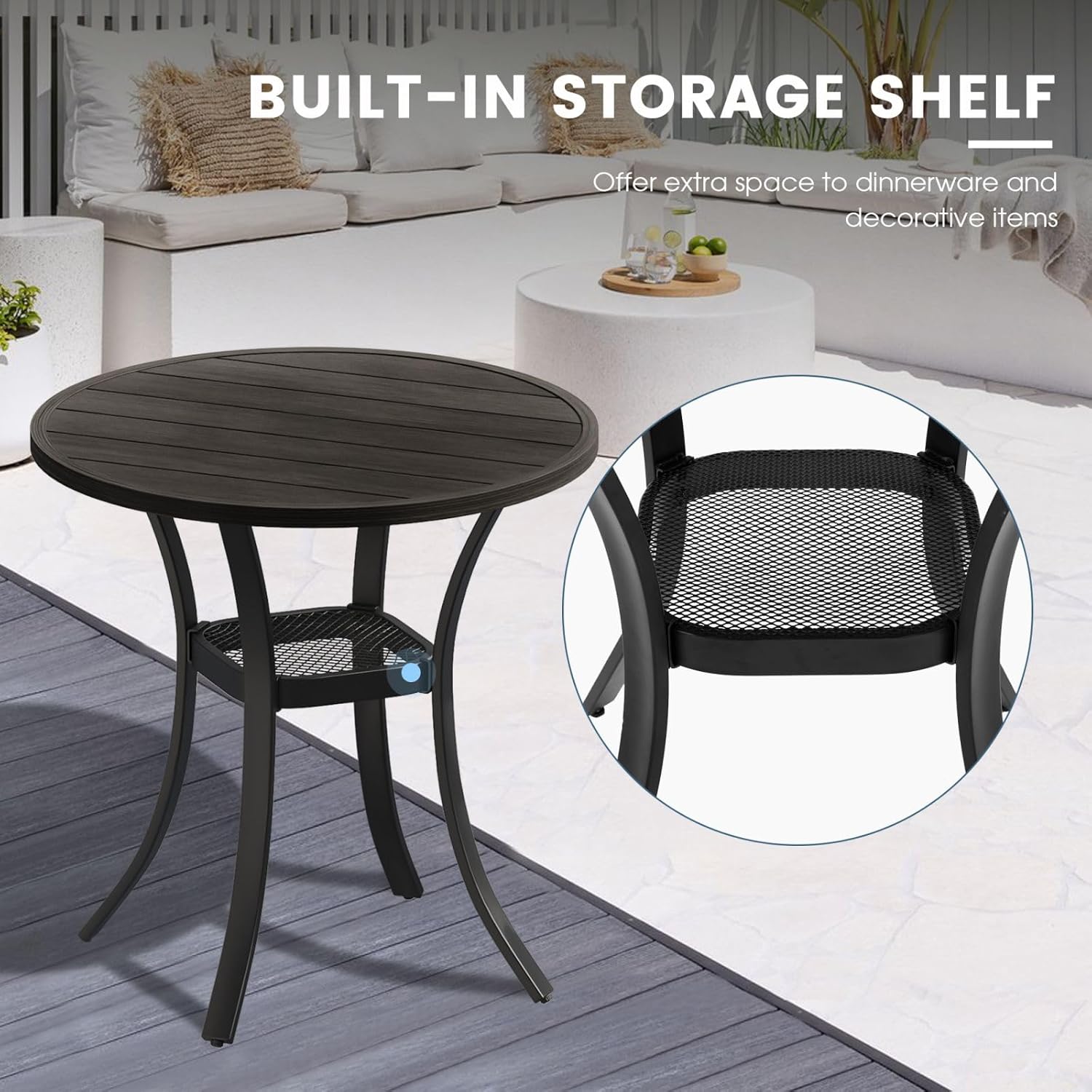 DIFY 27.6" Round Patio Dining Table, Outdoor Bistro Table with Rust Resistant Metal Frame, Ideal for Lawn, Backyard and Deck, Dark Grey