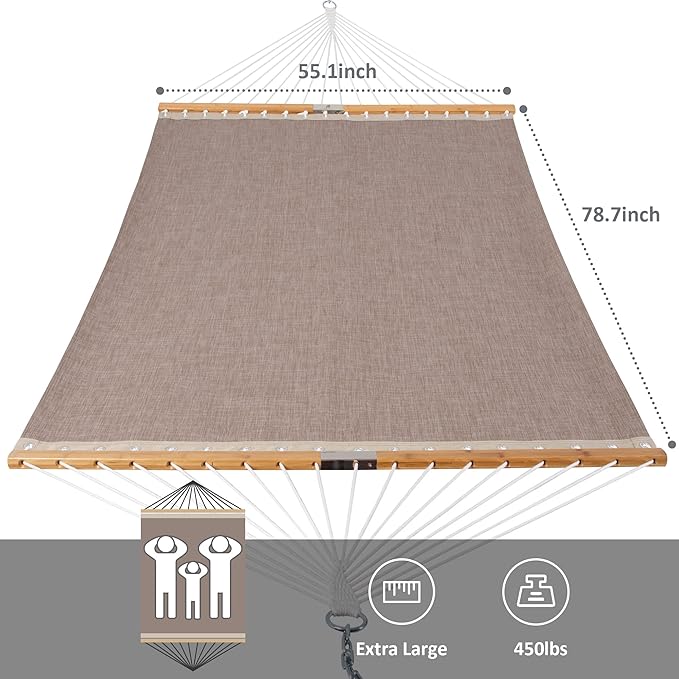 SUNCREAT Quick Dry Hammocks Standing Backyard Hammock with Stand, 2 Person Heavy Duty Hammock with 13.5 ft Wooden Stand, Brown
