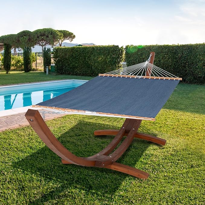 SUNCREAT Hammocks Standing Backyard Hammock with Stand, 2 Person Heavy Duty Hammock with 13.5 ft Wooden Stand, Navy