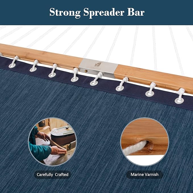 - Strong Spreader Bar: 55 inch spreader bars are more stylish and stable, giving you a comfy nap without fearing to flop down. Features countersunk spreader bar holes which reduce the severity of the friction between rope and wood