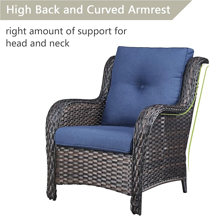 - 【Deep Seating & Comfort Cushions】The patio furniture set with 4-inch Seat Cushion,5-inch Back Cushion,3.5-inch Ottoman cushion,create the ultimate patio seating and foot relaxation experience.