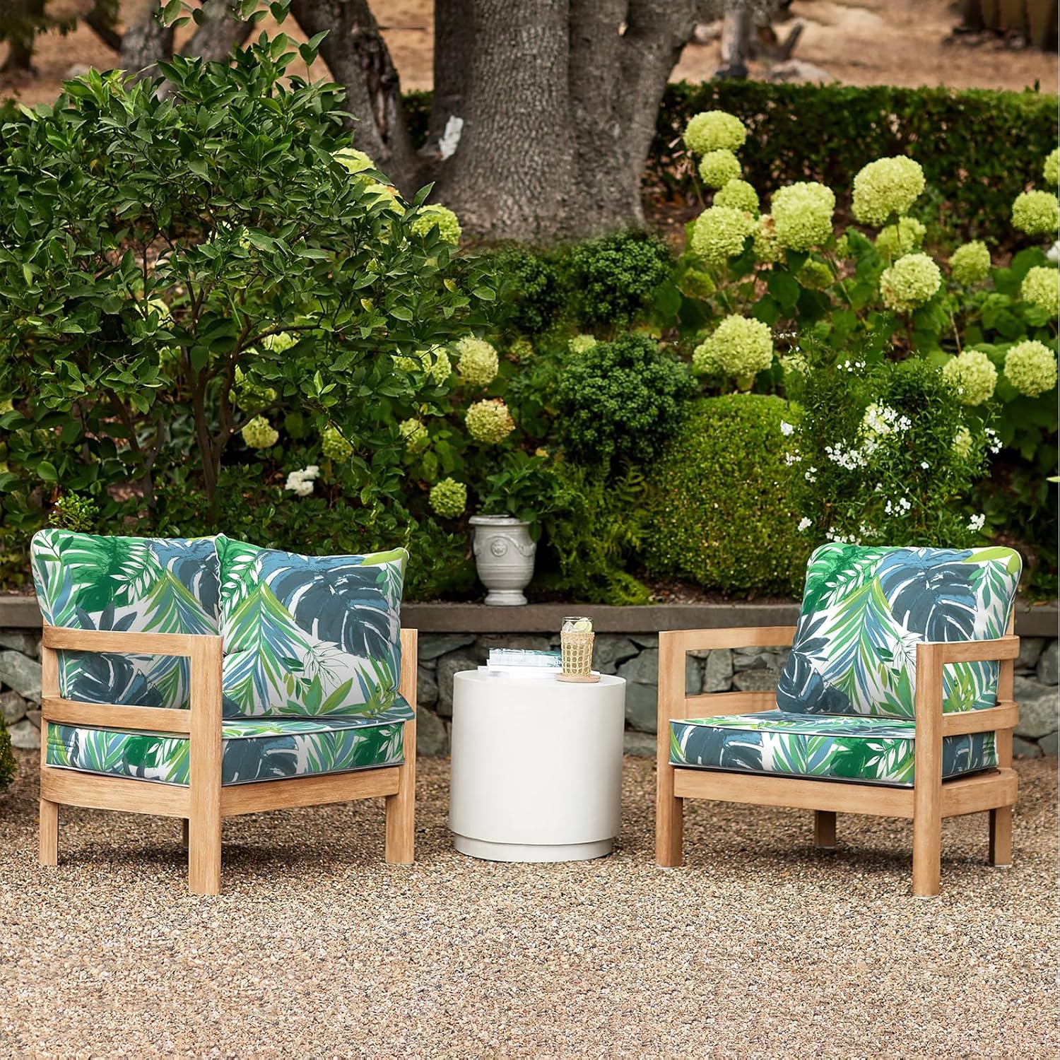 LVTXIII Outdoor Deep Seat Cushion Patio Seat and Back Cushion Set Seasonal Chair Cushion with Removable Cover and Adjustable Buckle for Home and Garden, 24"x24"x4", Islamorada Blue Green