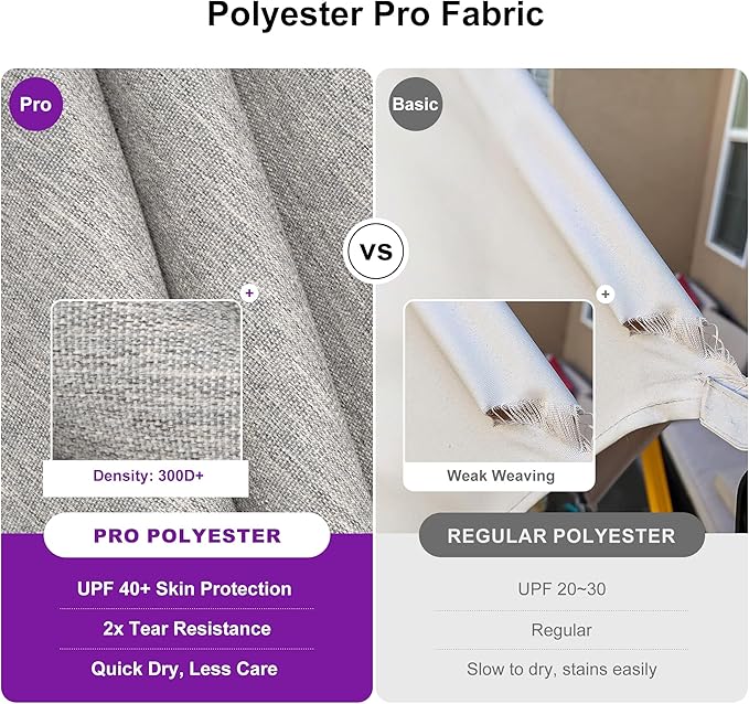 - Long-lasting sun protection: The fabric offers UPF40+ protection, blocking 98% of UV rays, and is fade-resistant for up to three years, with AATCC Level 4 colorfastness. Ideal for enduring sun protection.