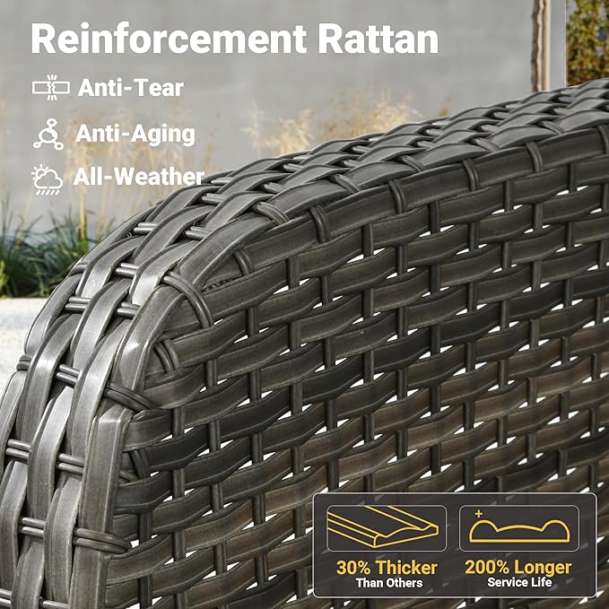 - All-weather Wicker Rattan: Our outdoor seating have very durable wicker rattan for all-weather use and a natural texture with good coloring. The high-quality patio chairs made of powder coated steel frame ensures good strength and stability