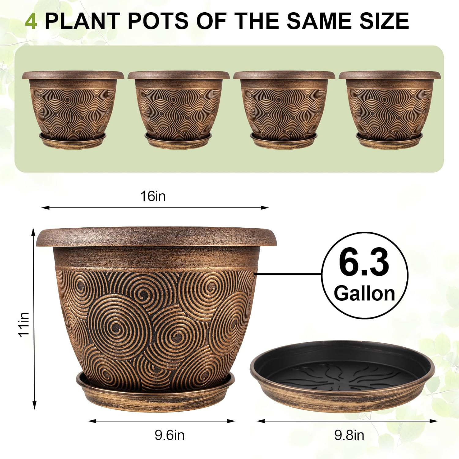 - 【Sturdy Resin Material】our 4 pack 16 inch planter for indoor plant are made of sturdy recyclable plastic which can bear extreme temperature environment. Lightweight, odorless, and will never warp or break. Set of 4 pack 16 inch Solid plastic large planter pots are suitable for house plants, succulents, flowers, and cactus.