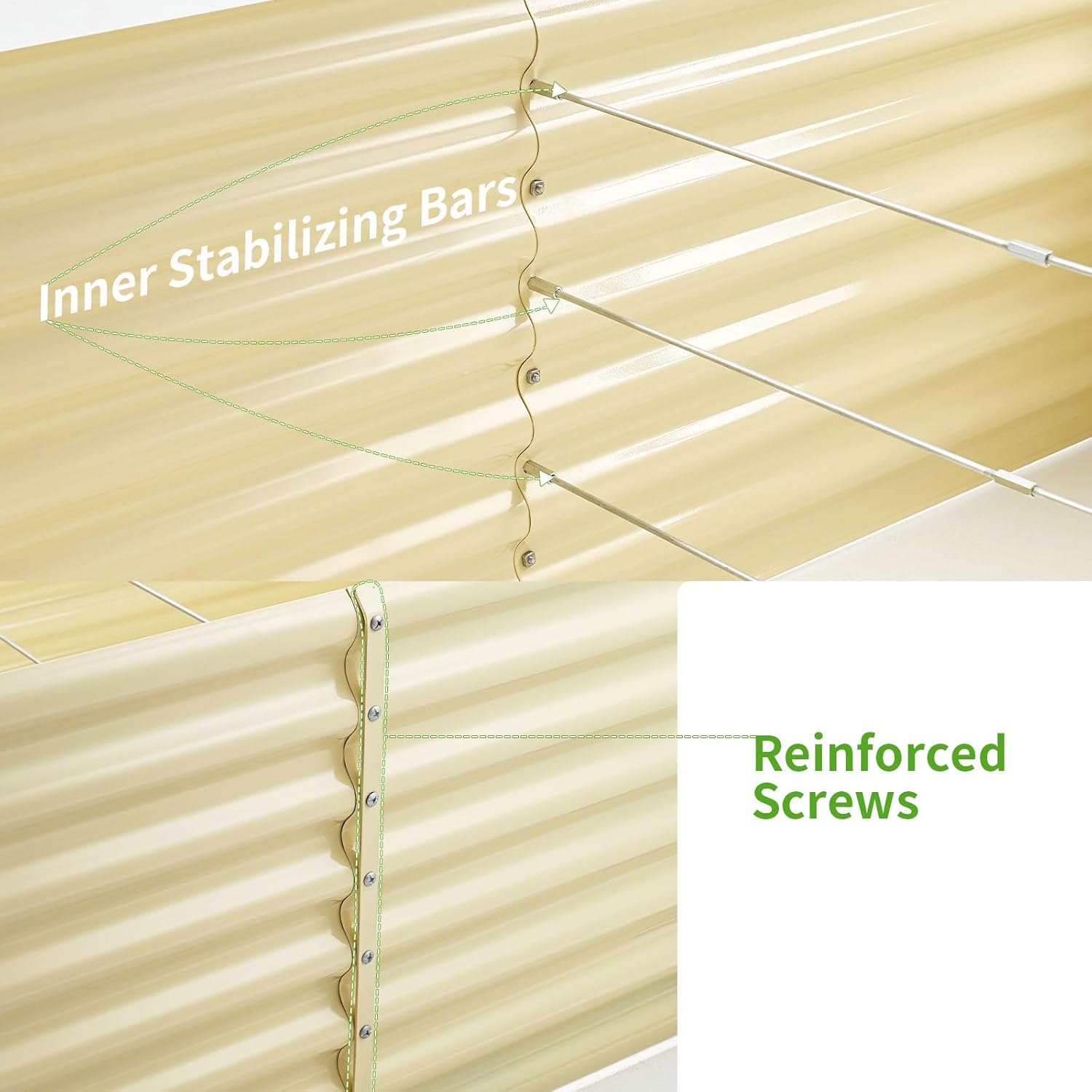Land Guard 8×4×2ft Galvanized Raised Garden Bed, Planter Boxes Outdoor, Raised Garden Beds Outdoor for Vegetables, Flowers, Herbs, 479 Gallons, Cream Yellow…