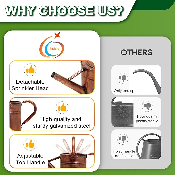 - Stylish and Functional: Whether you're a seasoned gardener or just starting out, this 1-gallon metal watering can is a stylish and functional addition to your gardening arsenal. Its elegant design and high-quality construction make it perfect for both indoor and outdoor use, simplifying the task of watering your plants.