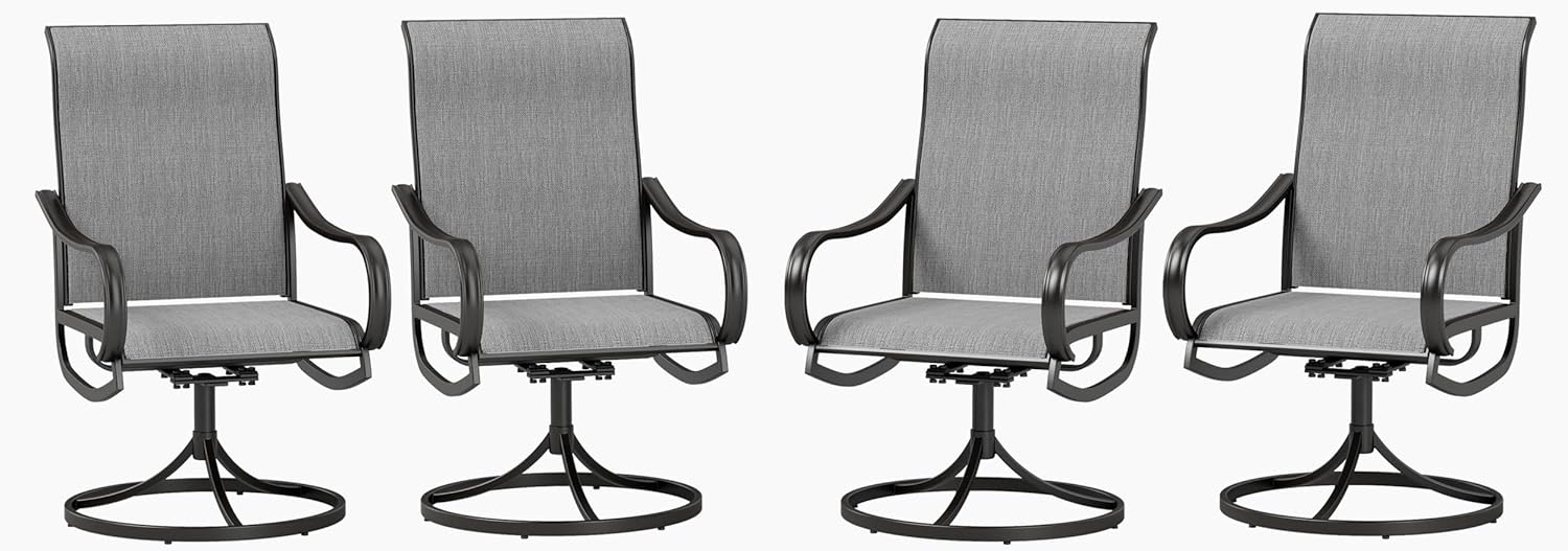 PHI VILLA Patio Swivel Dining Chairs Set of 4, Outdoor Chair with Textilene Mesh Fabric & Black Metal Frame for All Weather Outdoor Lawn Garden Poolside (Gray)
