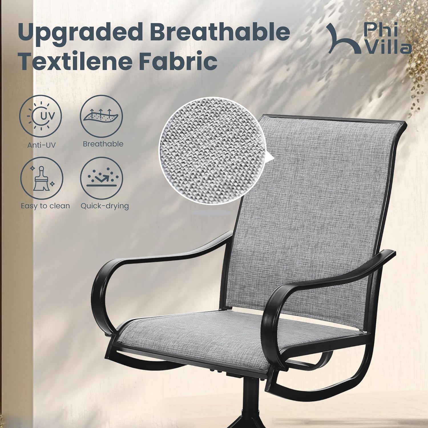 PHI VILLA Patio Swivel Dining Chairs Set of 2, Outdoor Chair with Textilene Mesh Fabric & Black Metal Frame for All Weather Outdoor Lawn Garden Poolside (Gray)