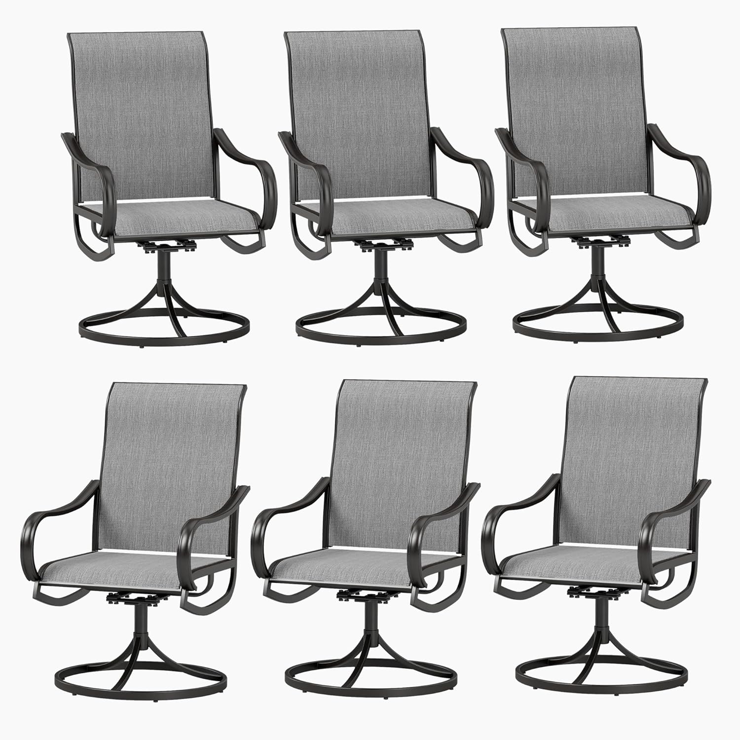PHI VILLA Patio Swivel Dining Chairs Set of 6, Outdoor Chair with Textilene Mesh Fabric & Black Metal Frame for All Weather Outdoor Lawn Garden Poolside (Gray)