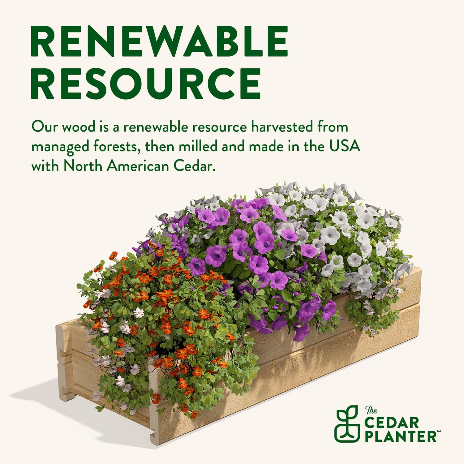 - SUSTAINABLY SOURCED AND MADE IN THE USA: our cedar wood is a renewable resource harvested from managed forests. The planter box is proudly made with North American Cedar by Greenes Fence Company, family owned and operated since 1976.