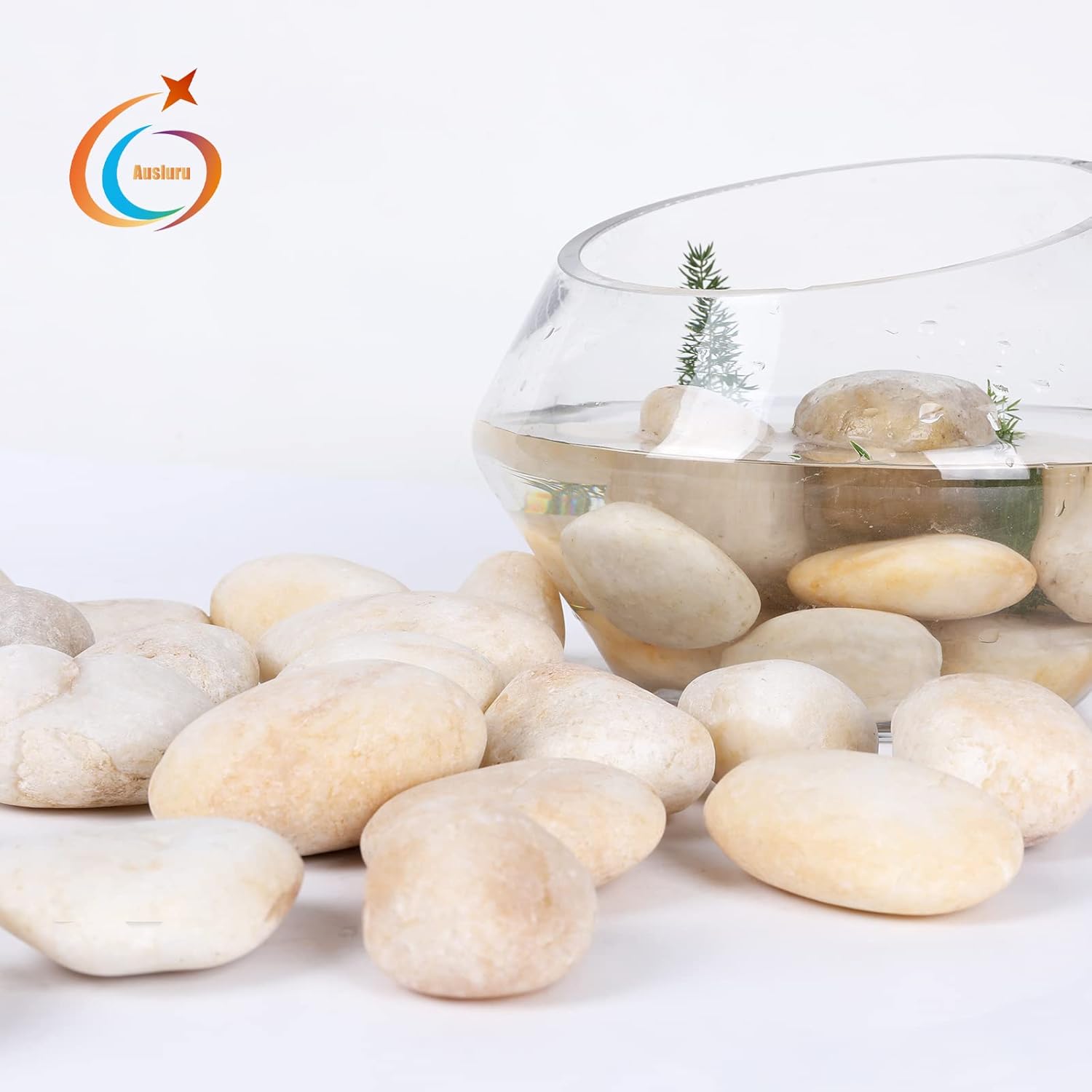 - 【Size & Color】 The size of Ausluru smooth pebbles ranges from 2” to 3”. Since they are natural so the shape and color of rocks are unique. The color of this river rock may include a variety of different shades of cream White.