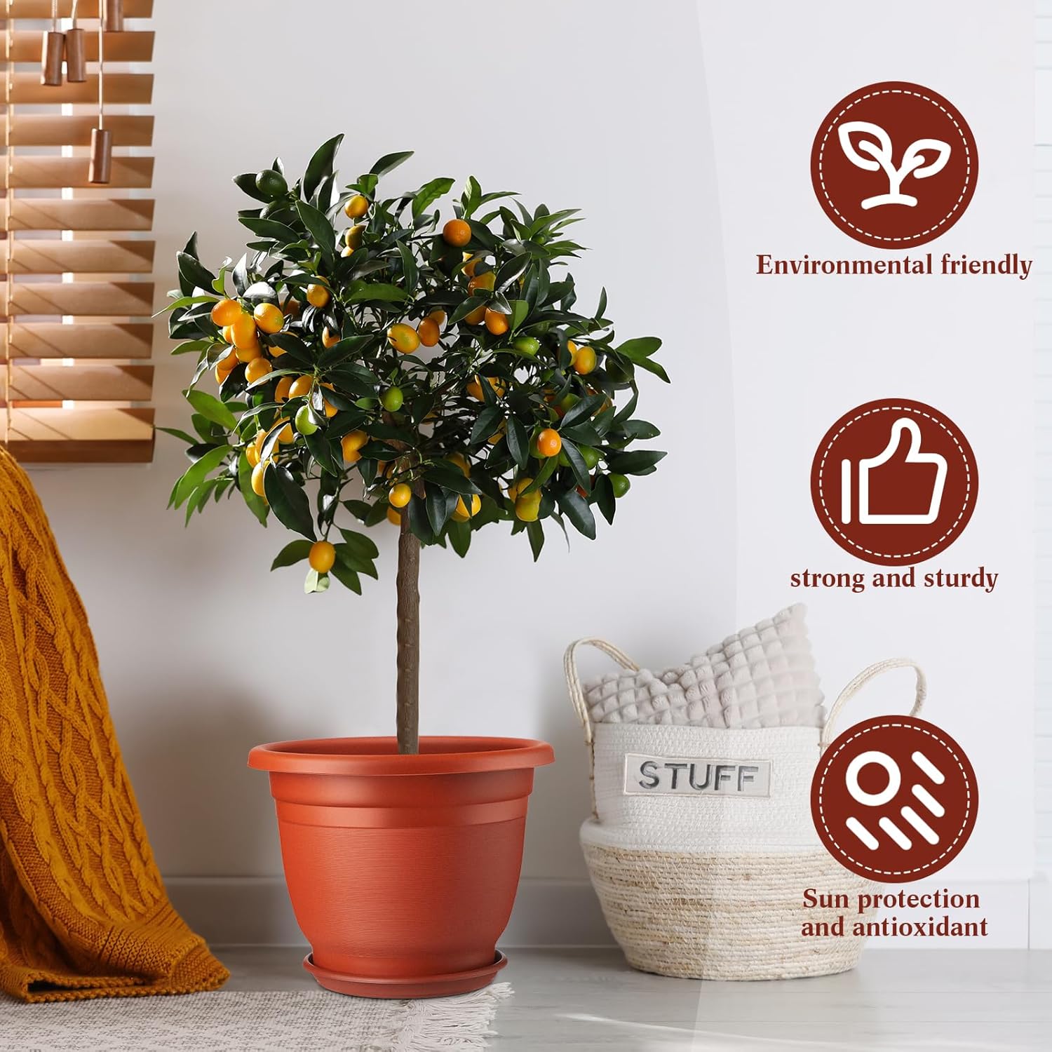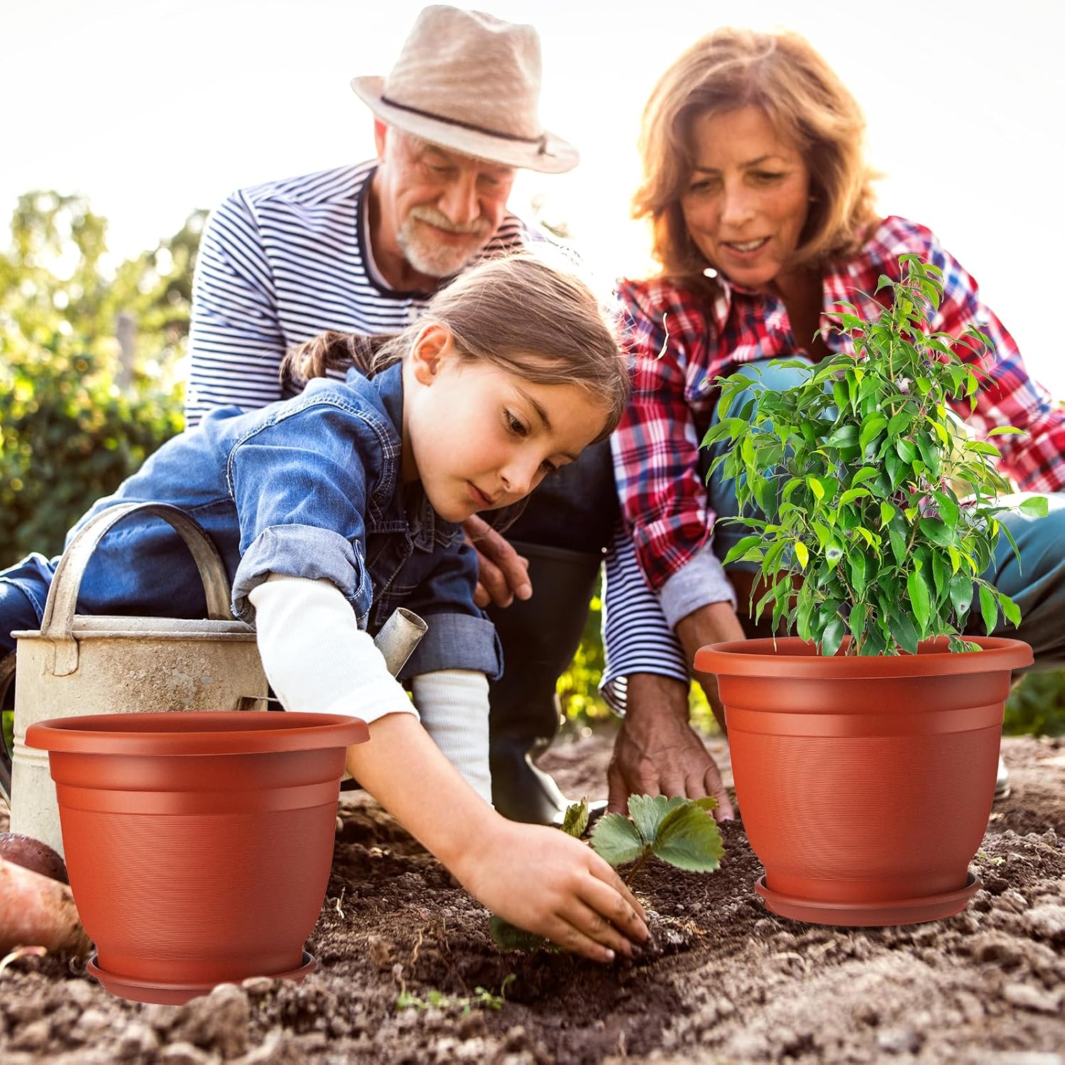 12 Pack 8+'' Plastic Plant Pots Round Planter Pots with Saucer Tray Seedling Pots with Holes Seed Resin Plant Pot Starting Nursery Flower Container with Pallet for Garden Outdoor Indoor