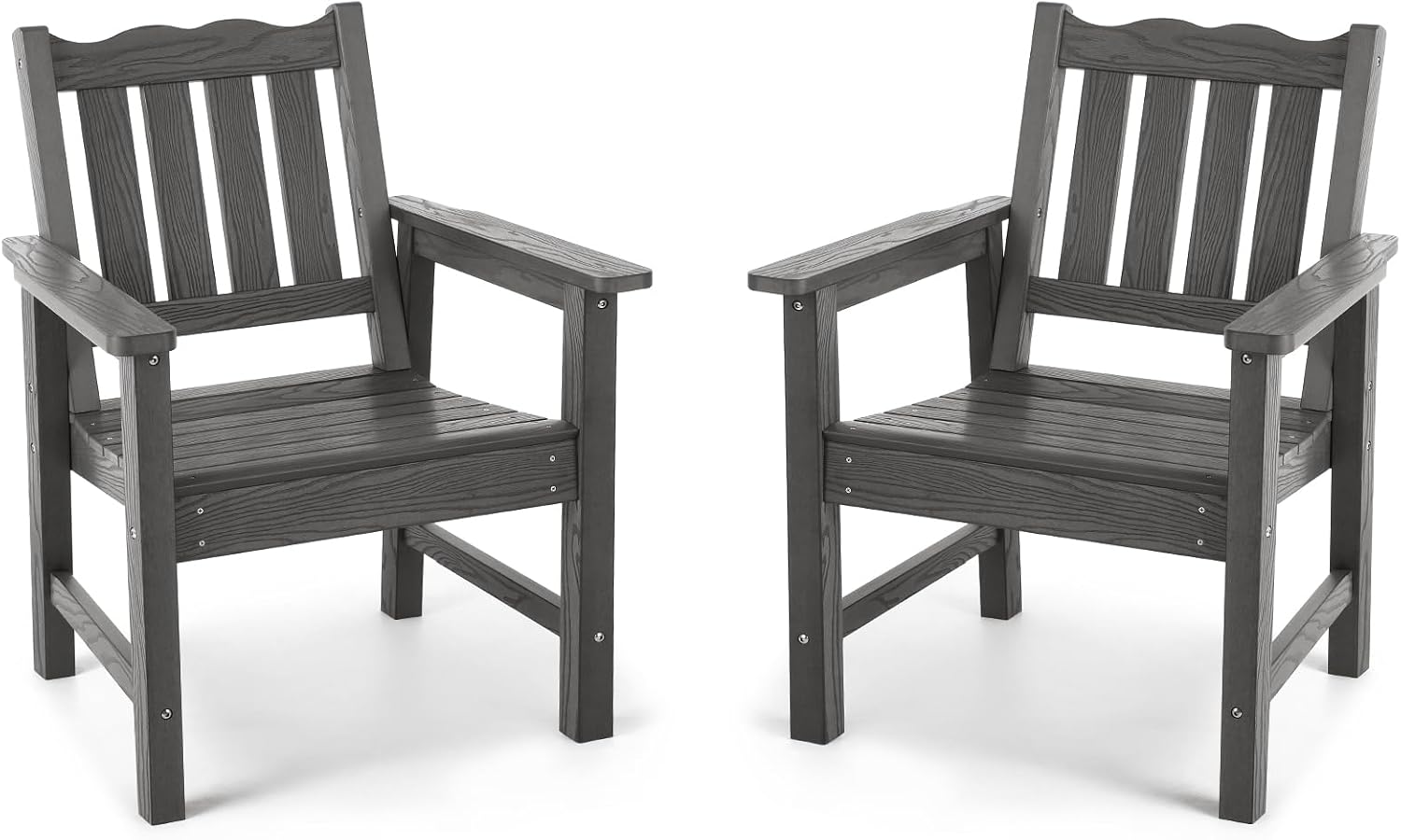 Stoog Outdoor Chairs Set of 2, All-Weather HIPS Patio Dining Chairs with Curved Backrest, 400 lbs Support Garden Chairs, Grey