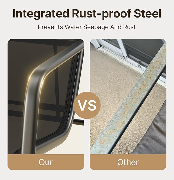 - Rust-Resistant and Impact-Resistant: Our patio chairs Set of 2 features a one-piece connected design to prevent rainwater from seeping in. The rounded design of the armrests and table corners helps prevent injuries
