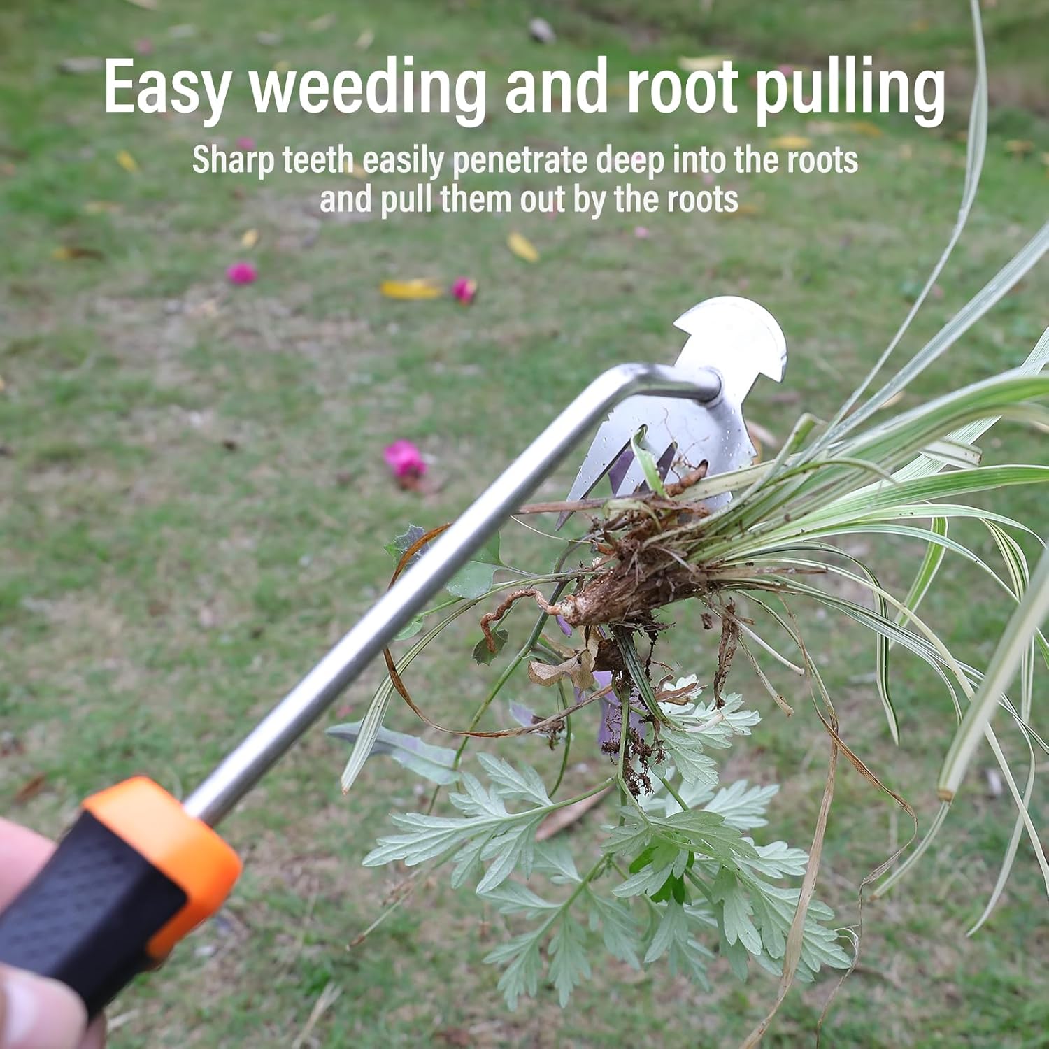 - Weeding Tools Gardening Long Handle: 13.3 inches lengthen weeder tool,It is the perfect length for a weed puller. Use stainless steel electroplated and polished craftsmanship, the durable handle is more comfortable to hold.