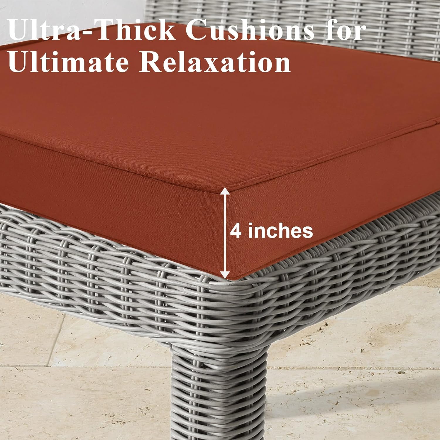 - HIGH RESILIENCE FOAM SUPPORT:We use thicker 4 inch high resilience premium foam, super soft and comfortable. Premium sofa level hardness provides excellent elastic support and effectively relieves pressure on your body. Reduce the pain of lumbar, back and hip. MJIAIDEA Outdoor furniture cushions are not easy to deform after sitting for a long time