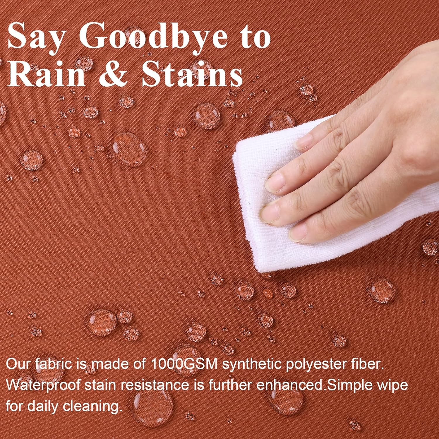 - WATERPROOF FABRIC: The patio chair cushion is made of 600GSM high density polyester waterproof cover with waterproof PU coating inside. All-around waterproof and rainproof to protect the inner sponge