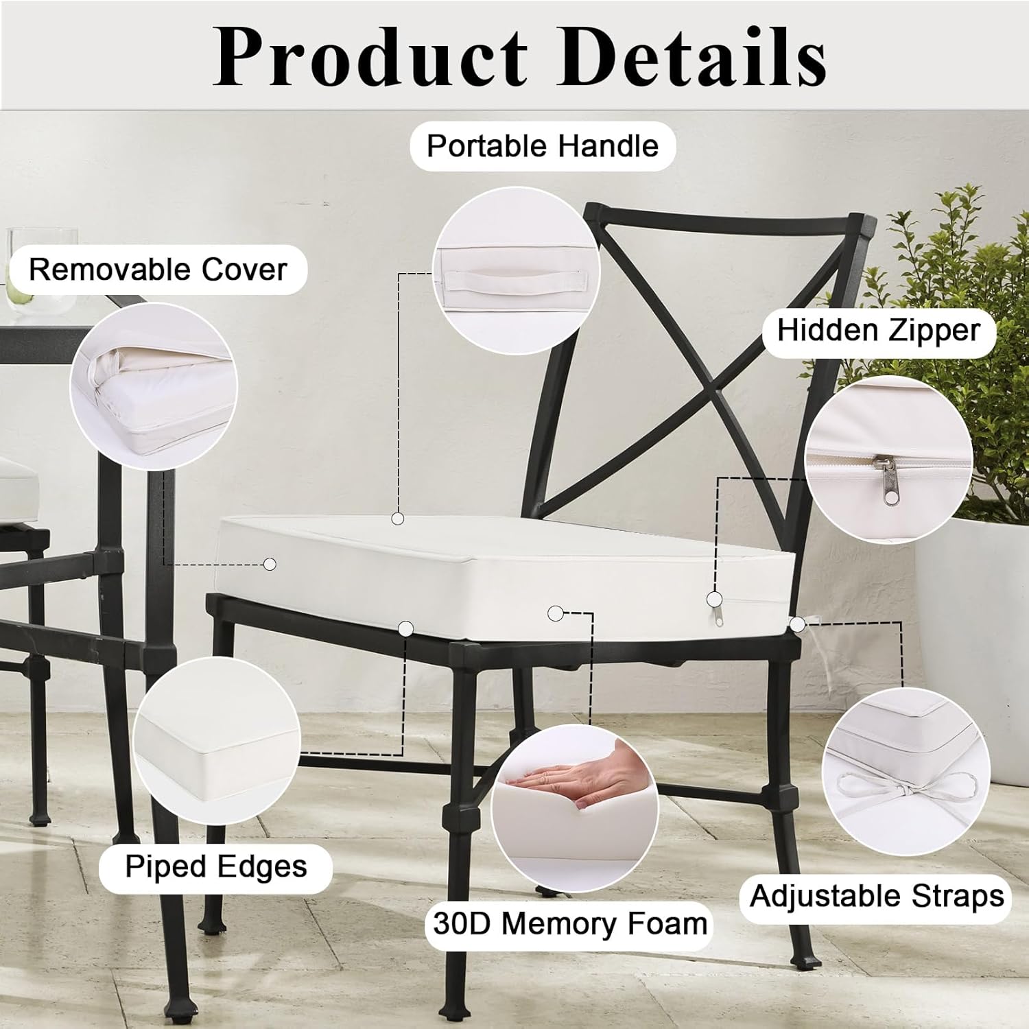 - ADJUSTABLE STRAPS & CARRYING HANDLES: MJIAIDEA outdoor chair cushions are designed with a delicate and convenient handle and two adjustable straps.The 2 adjustable straps can be easily fastened to different sizes and types of chairs and sofas, securely fixing them to your outdoor chairs and preventing them from sliding easily. The carrying handle makes it easy to carry, change or clean the cushion cover at any time