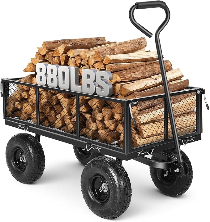 Homdox 880LB Heavy Duty Garden Cart on Wheels, Professional Utility Wagon with 180° Rotating Handle, Foldable Mesh Sides for Landscaping, Yard Work, Farming, Camping & Outdoor Projects