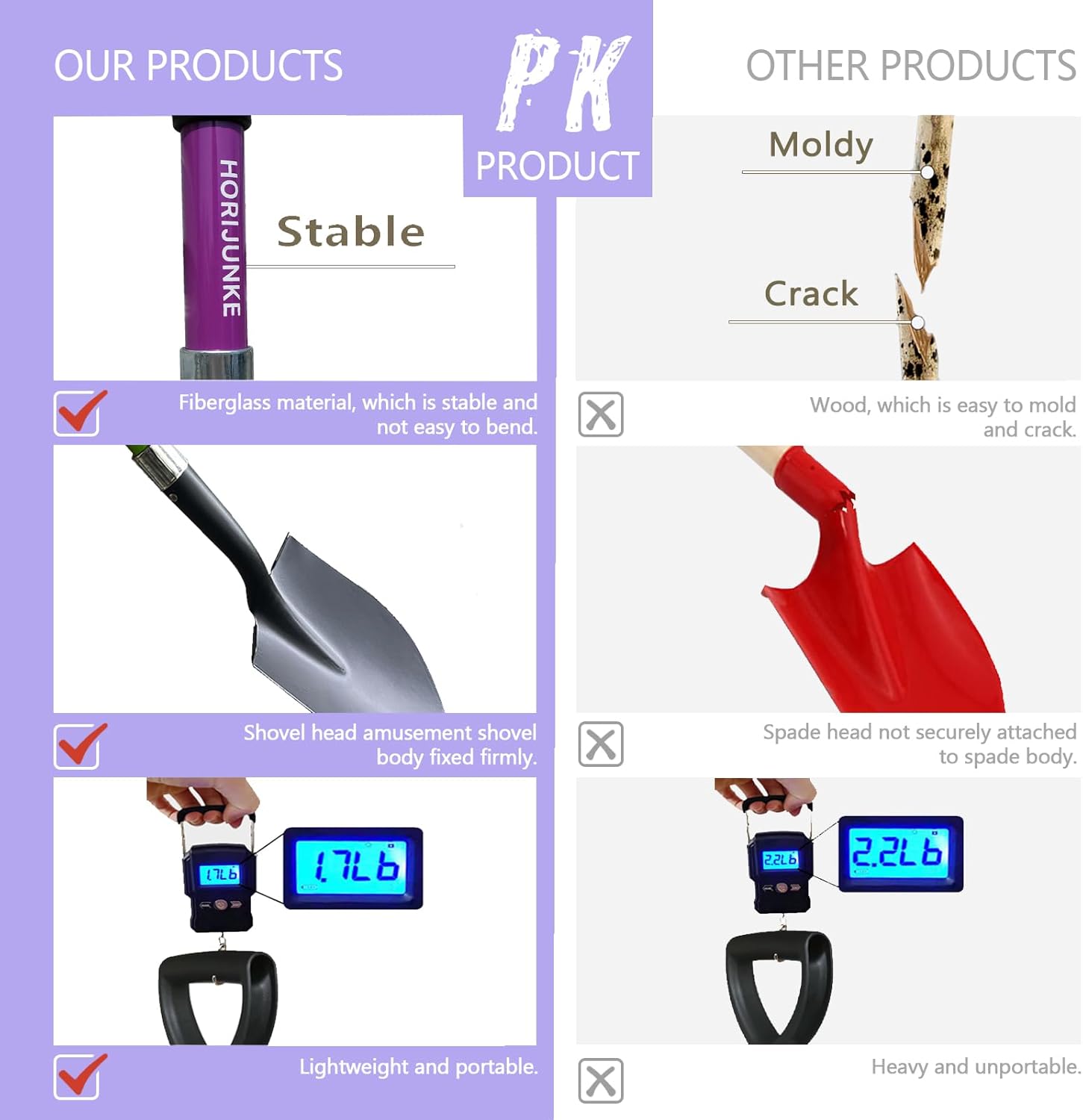 - 【Beach Shovels】: This Spade Is 27inch Long, Portable And Space-Saving, Can Easily Fit Into A Camping Backpack And The Trunk Of A Car, In Tight Spaces With Good Maneuverability And Heavy-Duty Handling Capabilities.