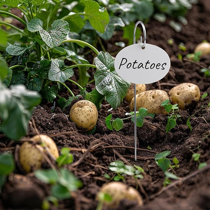 - Easy To Use: Each label comes with a pre-drilled hole. You can hang them on stake, keeping the tag out of the soil. Stainless steel stake can be easily inserted into the soil and are not easy to rust.