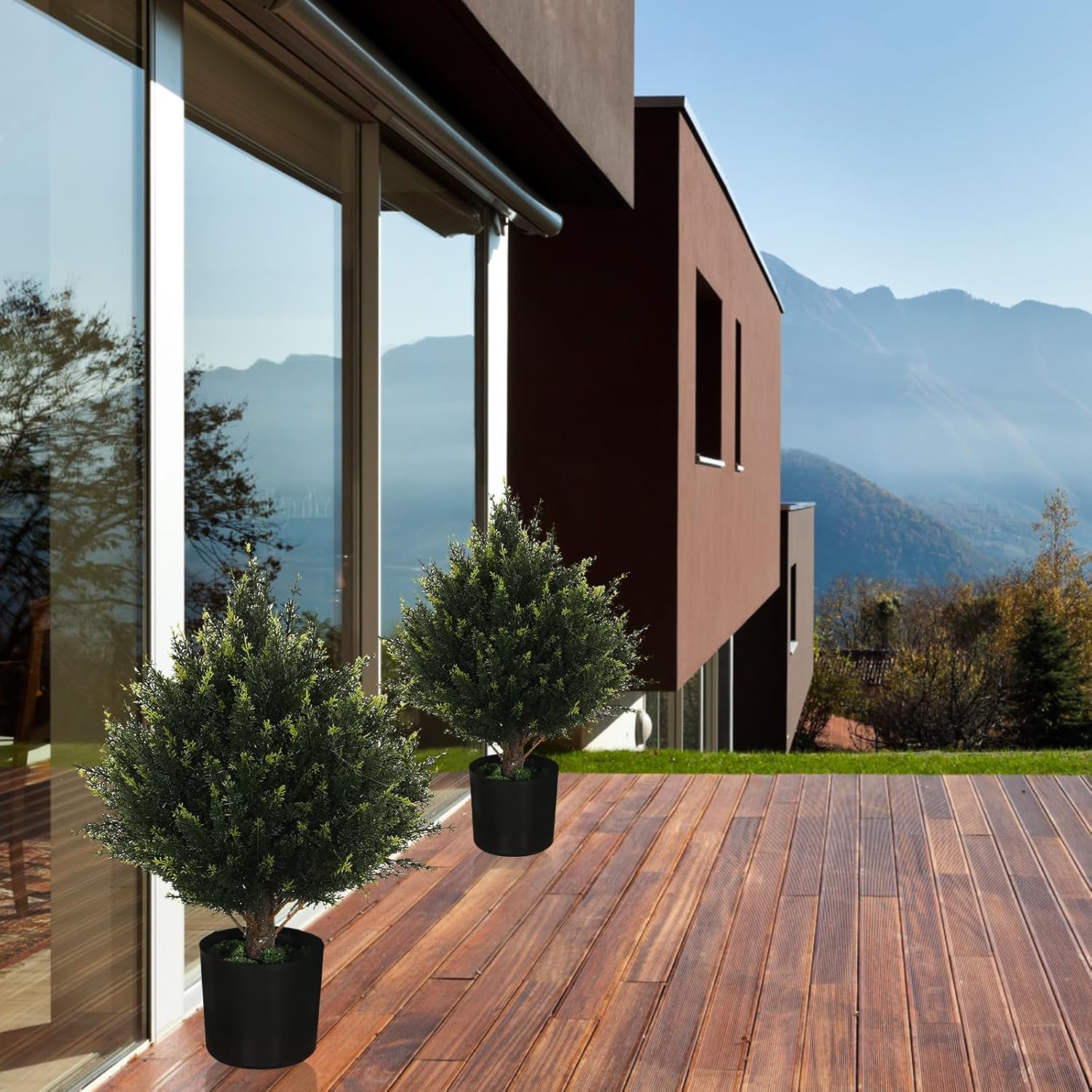 - Satisfaction guarantee:The artificial cedar has warranty of 30 days refund. If you do not like it, you can return the product without worry. Since the cedars are made by hand, the same shape of all cedars can not be ensured, but each cedar is beautiful without exception. nearly natural artificial cedar artificial potted plants outdoor If you are not satisfied, please contact our customer service