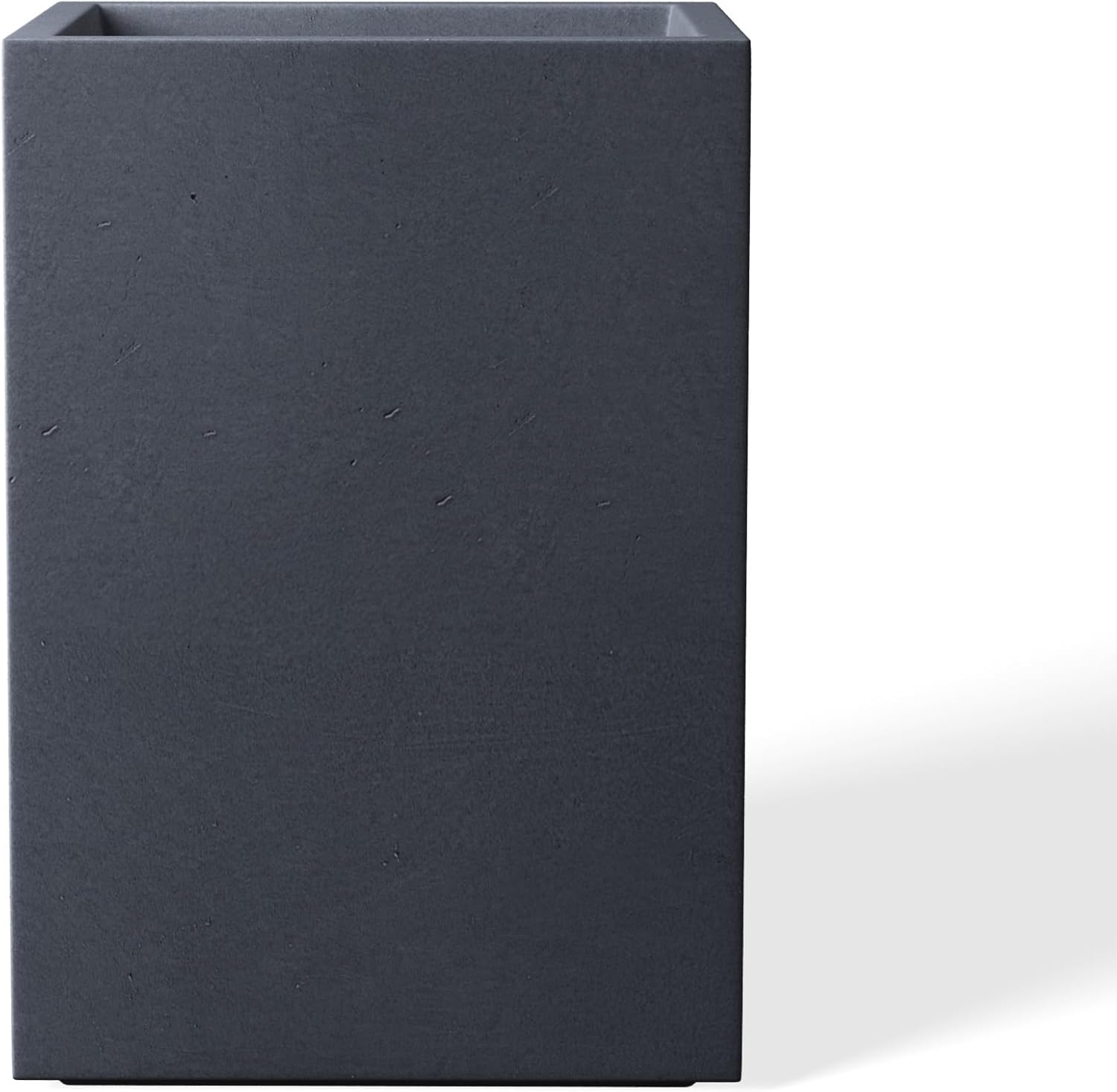 Kante 12.6" H Tall Rectangular Concrete Planters, Outdoor Indoor Lightweight Plant Pots with Drainage Hole and Rubber Plug, Modern Style for Home Garden Patio, Charcoal