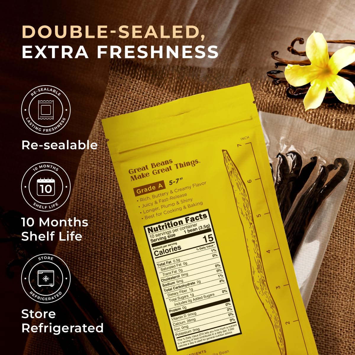 - Tested for Safety and Quality. 100% natural and plant-powered, our vanilla beans bulk are free from preservatives to uplift you with a rich, flavorful experience. All vanilla beans are tightly sealed in vacuum airtight packs for lasting fresh flavor.