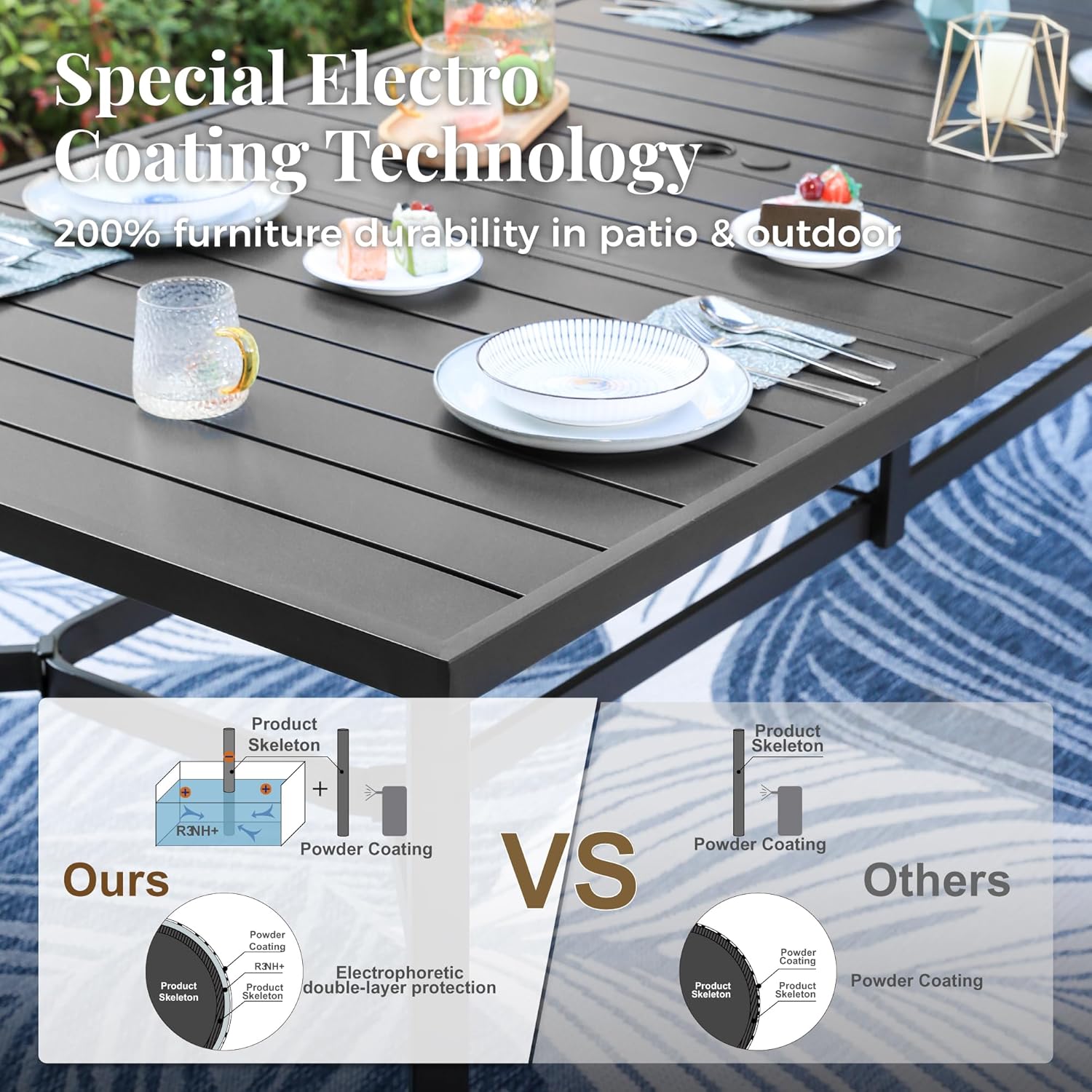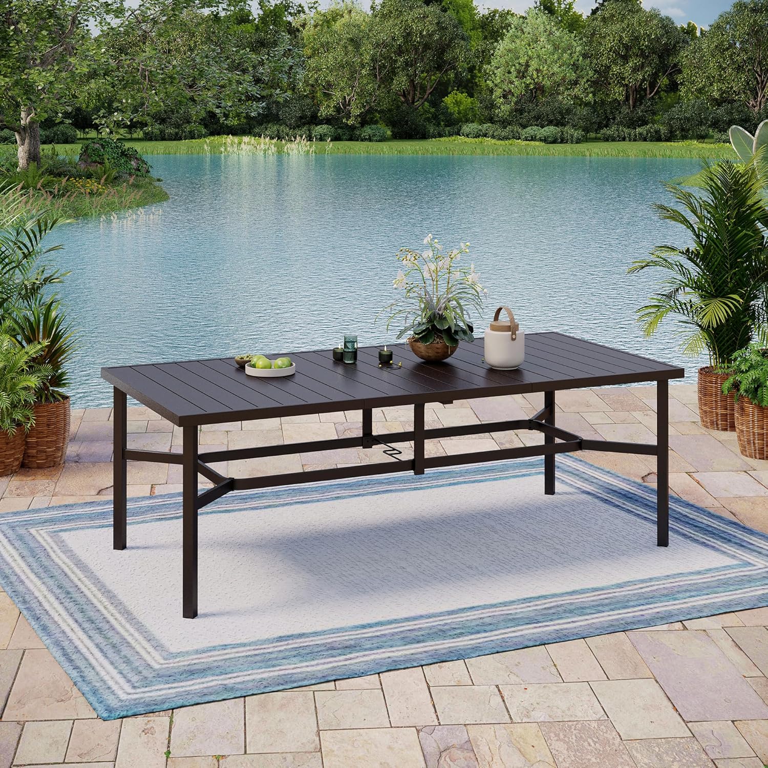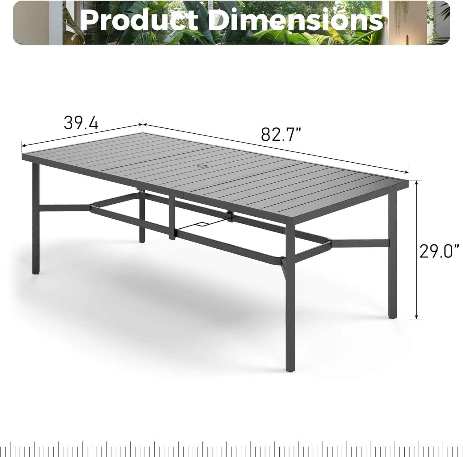 Outdoor Patio Dining Table for 8, 83" x 39" Rectangular Metal Patio Dining Table with 1.7" Umbrella Hole for Garden, Backyard and Porch