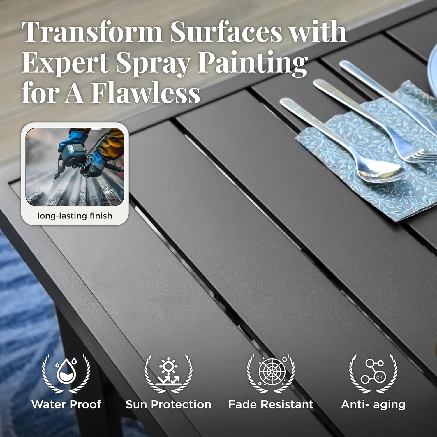 - Superior Material: Solid patio dining table with powder coating against rust and paint off, specifically for outdoor use. This metal dinning table is strong enough to withstand the rain, sun, and wind