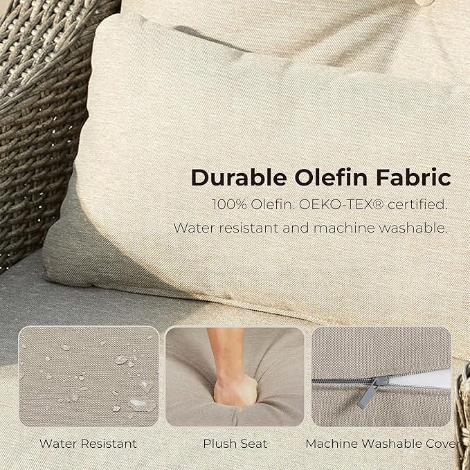 - Easy to Clean: The water-resistant 100% Olefin cushion covers are easy to maintain. Simply spot-clean with mild soap and water for regular care, or machine wash on a cold cycle for deeper cleaning. For protection during harsh weather, store the cushions under cover temporarily. Note: The product’s color may vary under different lighting conditions. For accurate color representation, always refer to the actual product.