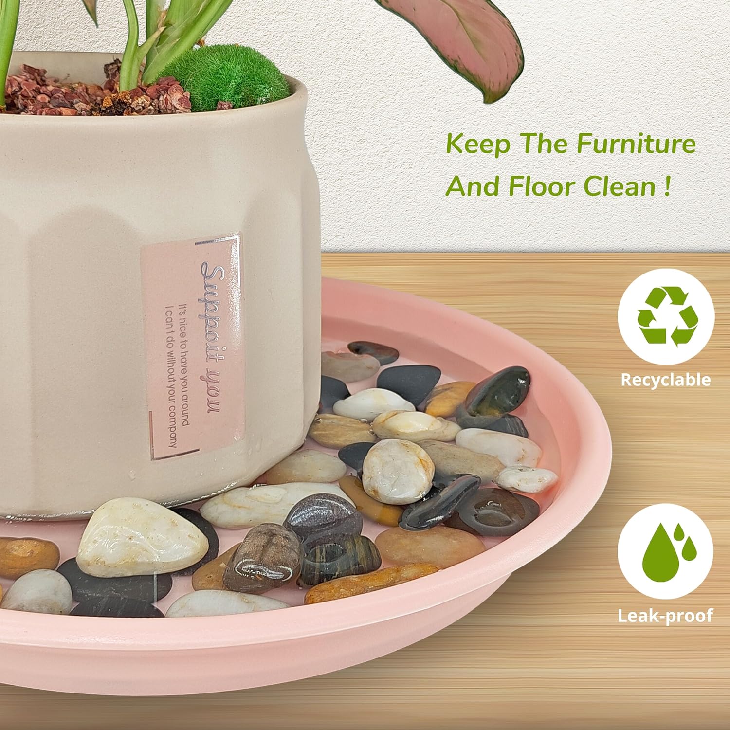 - Optimal Plant Drainage: These plant pot saucers help you catch water from the plant pot drainage hole. help protect wooden floors, carpets, and tabletops from water drainage and soil spillage. You can decorate the plant drip tray with colorful pebbles