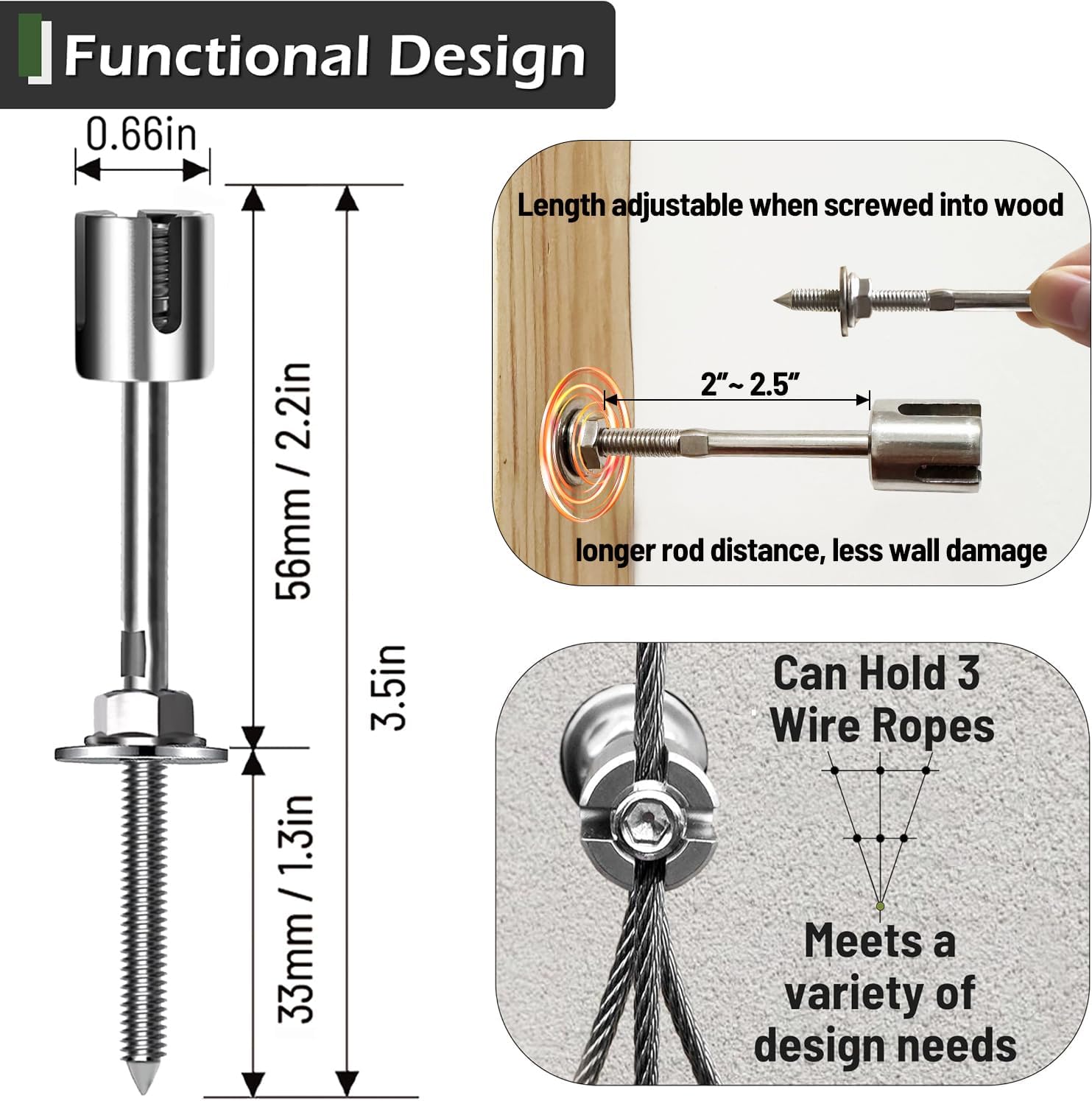 - Package Contents - 30pcs crosshead standoffs(suitable for 1/8" cable), 30 plastic expansion anchors, 30pcs washers, 120 PVC end caps, 1 masonry drill bit, 1 Allen key, 1 all-purpose spanner, 1 instruction manual. We offer a lifetime after-sales guarantee