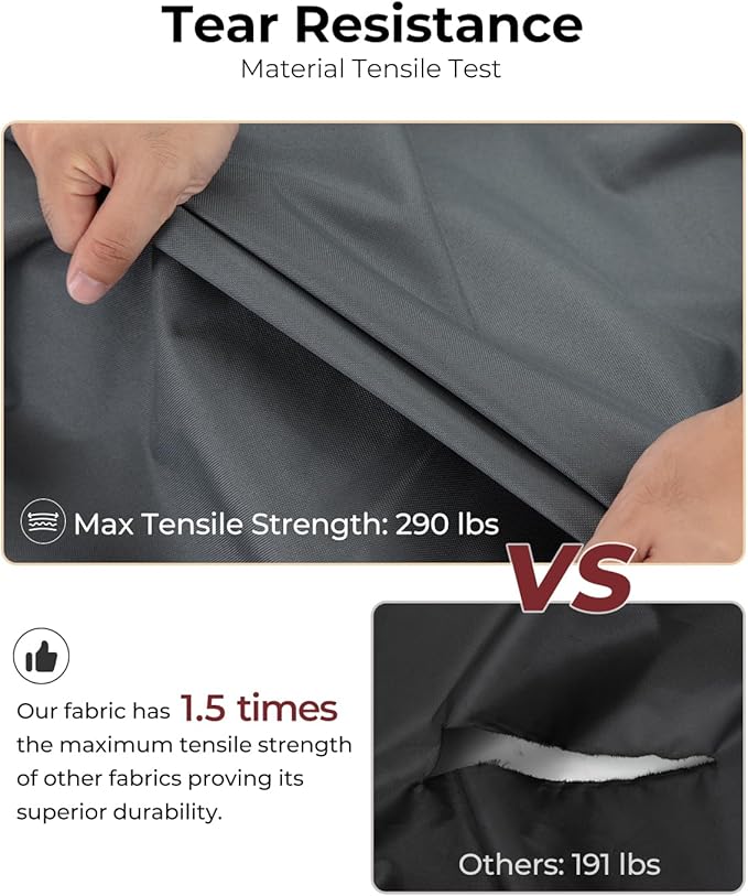 - Sun-Resistant and Long Lasting - With an advanced PVC waterproof coating, our outdoor patio furniture covers can withstand prolonged exposure to the sun without fading. It ensures that your outdoor furniture remains in top condition, safeguarding it from wind, rain, and the harsh effects of sunlight.