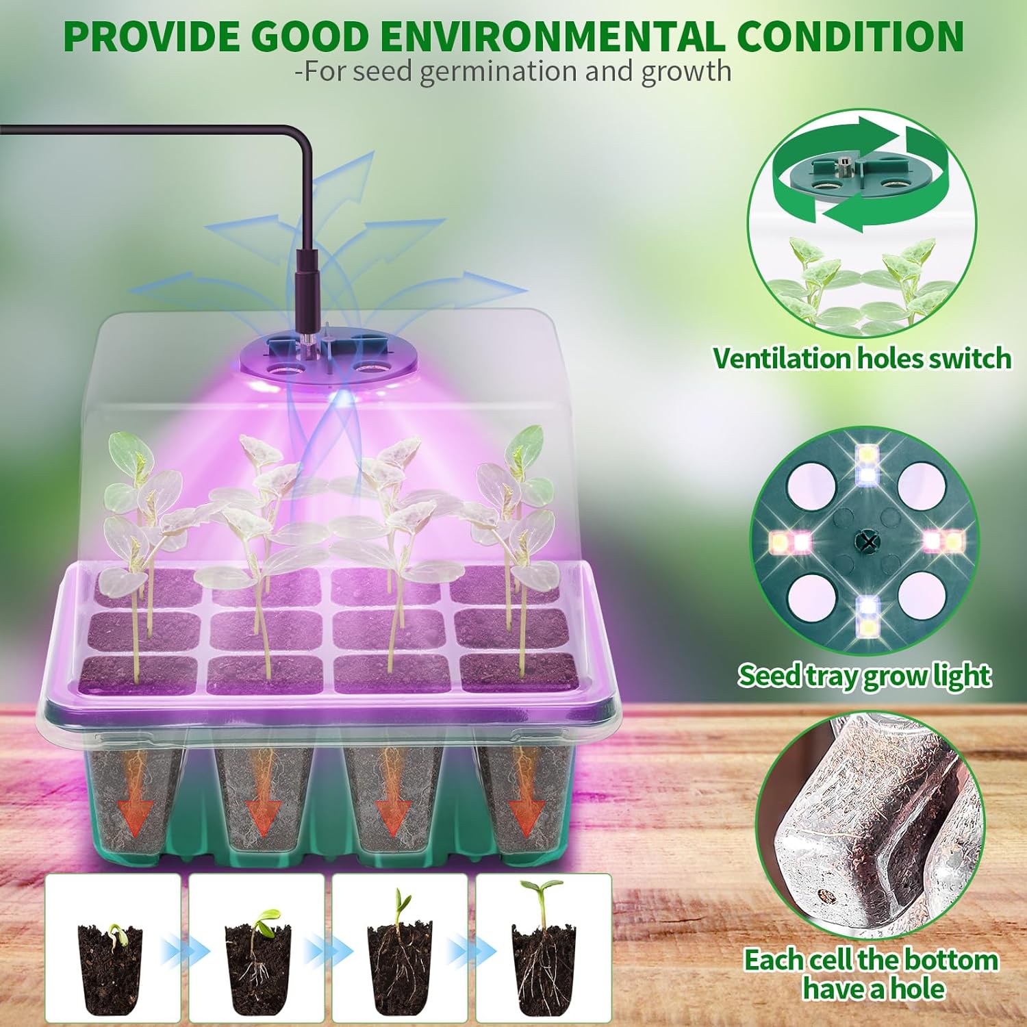 - Full Spectrum LED Plant Lights: Each seed starter tray comes equipped with 8 LED plant lights that provide a full spectrum of light, mimicking natural sunlight to facilitate robust and healthy plant growth.