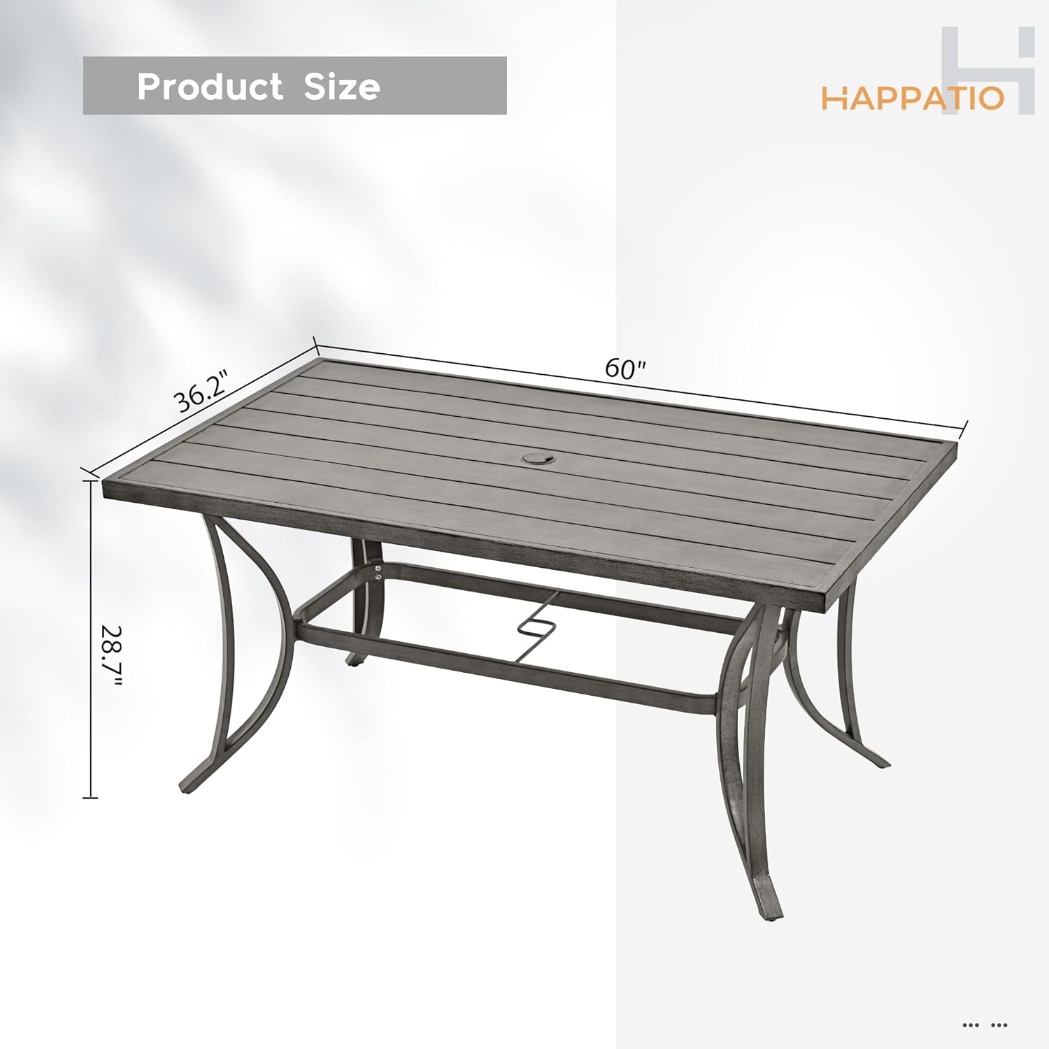 HAPPATIO Patio Dining Table for 6, Large Rectangle 60"×36.2", Patio Aluminum Slat Dining Table with 2.2" Umbrella Hole, All Weather Outdoor Table for Lawn, Garden and Poolside