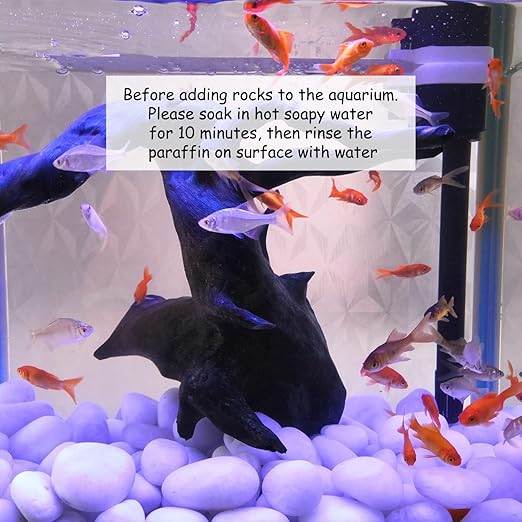 - 【Note】White rocks are not pure white, some of their surfaces are yellow or gray. Pebbles are made solely from natural rocks and pure paraffin, we do not recommend placing it in a fish tank, if you need to put it in a fish tank, please wash the surface with hot soapy water or detergent, then wash it with clean water. If you have any questions, you can contact us at any time, and we will do our best to solve your problems