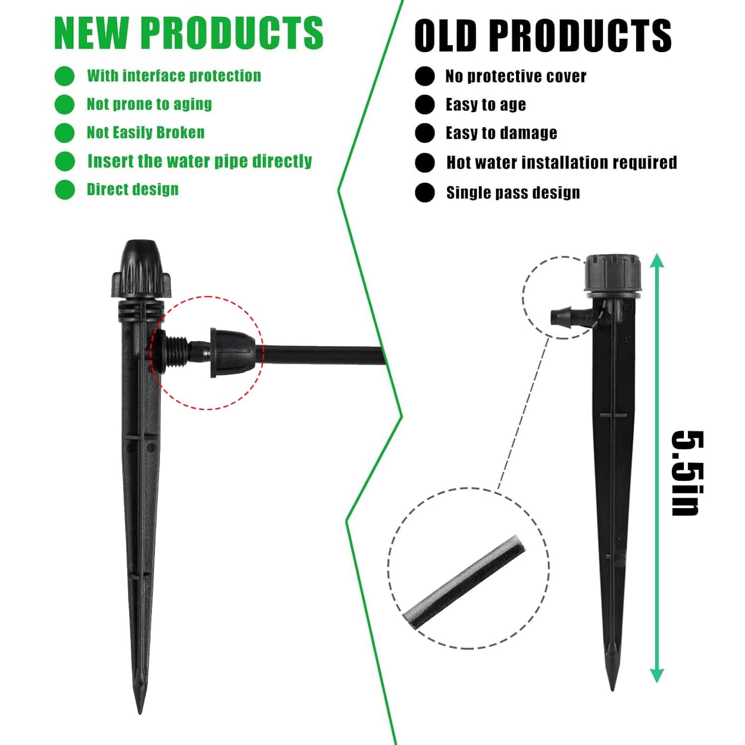 - 【Fits 1/4 inch drip irrigation tubing】 The adjustable drip irrigation misting spray emitters fits for 1/4 inch drip irrigation tubing, The spray nozzles can adjust water flow ,it will not cause the plant to obtain too much or too little water, to avoid affecting the growth of the plant. All drip line irrigation emitter are designed with safety buckle nuts,locked head connecting can quickly and efficiently create small drip irrigation systems