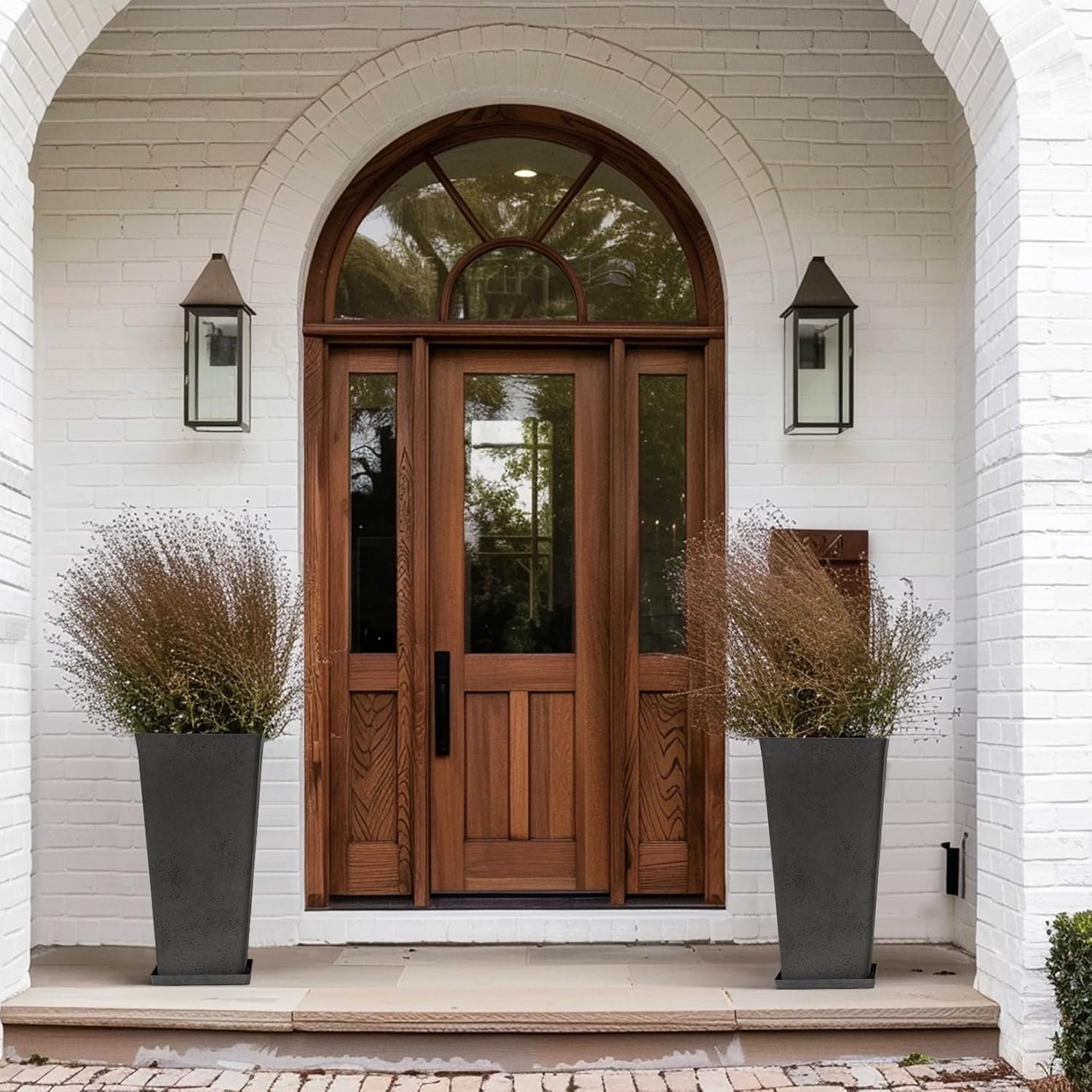 - DURABLE MATERIAL - Made from premium recycled plastic, natural stone powder. This large-capacity outdoor planter set is sustainable meanwhile features a thick, sturdy wall, it's durable enough for long-term use.