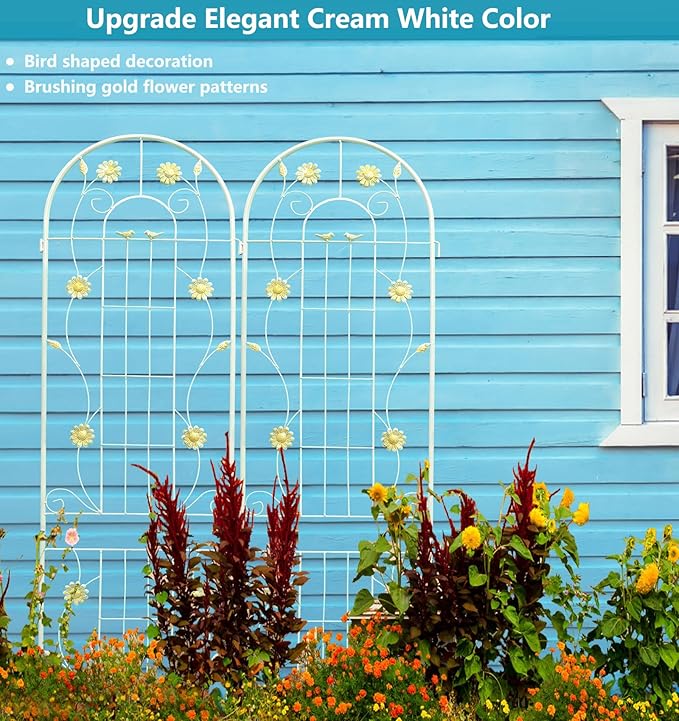 - Elegant Cream White Appearance: There are wire patterns on the garden trellises, which create the perfect surface for climbing plants or flower to grow with its delicate patterns.