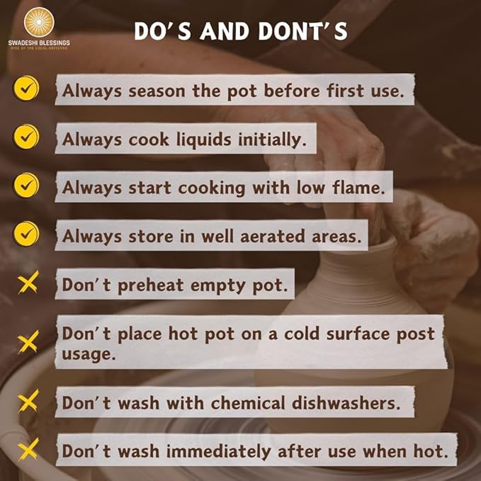 - Benefits- Clay is somewhat porous so heat and moisture circulate through the pot, unlike metal & enamel pots therefore it is perfect for slow cooking without overheating. This helps retain all the natural vitamins and minerals of the food. Clay pots add many essential nutrients like calcium, phosphorus, iron, magnesium and sulphur to food.