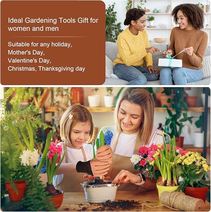 - Versatile Application: With comfortable ergonomic handles and gardening gloves, gardening tools set is the perfect tool for efficiently when moving plants to their new locations, whether you're transplanting flowers, vegetables, or herb. It's suitable for women and men and makes a thoughtful Christmas, Valentine's Day, or birthday gift!