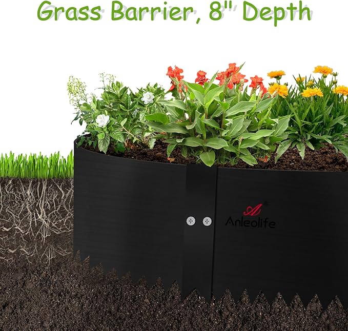 - A strong metal barrier against escaping roots at 1.1mm thickness and 8 inch height (approx.), prevents grass from invading garden beds and keeps soil, pebbles and mulch inside garden borders for a neat appearance