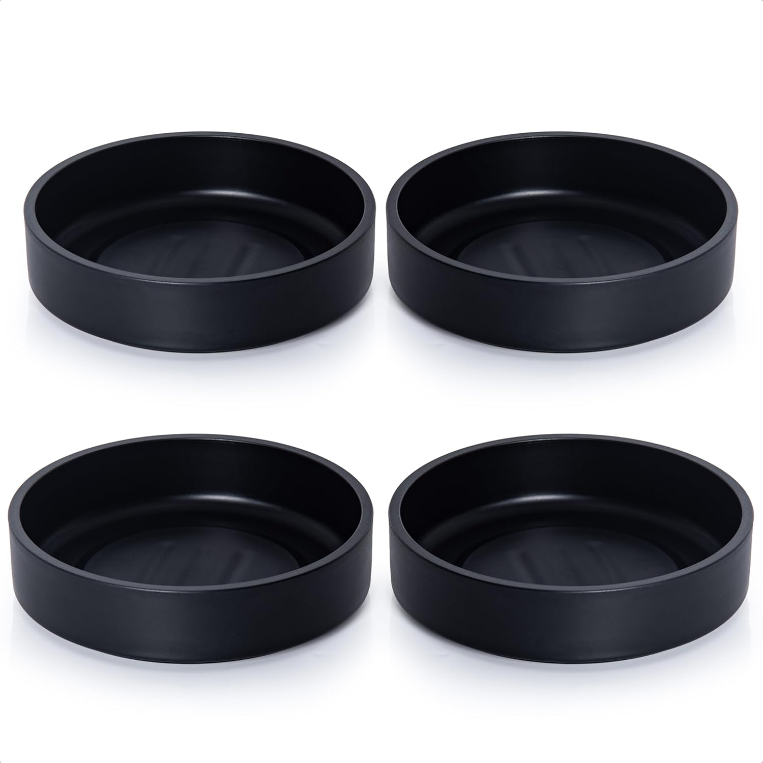 Phoenix Vine 6 Inch Plastic Plant Saucer Water Drip Tray, Heavy Sturdy Round Plant Drainage Tray for Indoors Outdoor, Set of 4, Matte Black, 21-TY-6B-4