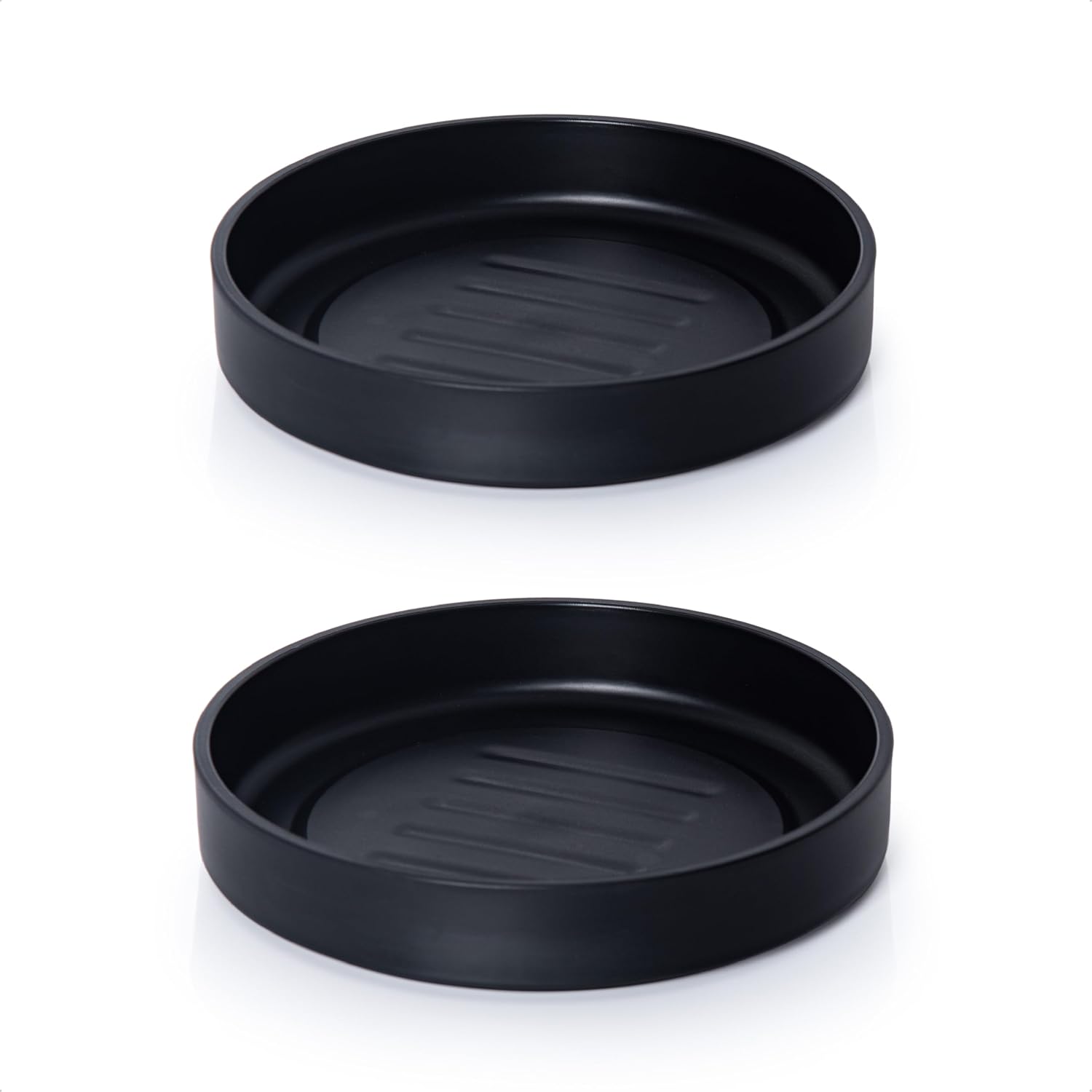 Phoenix Vine 8 Inch Plastic Plant Saucer Water Drip Tray, Heavy Sturdy Round Plant Drainage Tray for Indoors Outdoor, Set of 2, Matte Black, 21-TY-8B-2