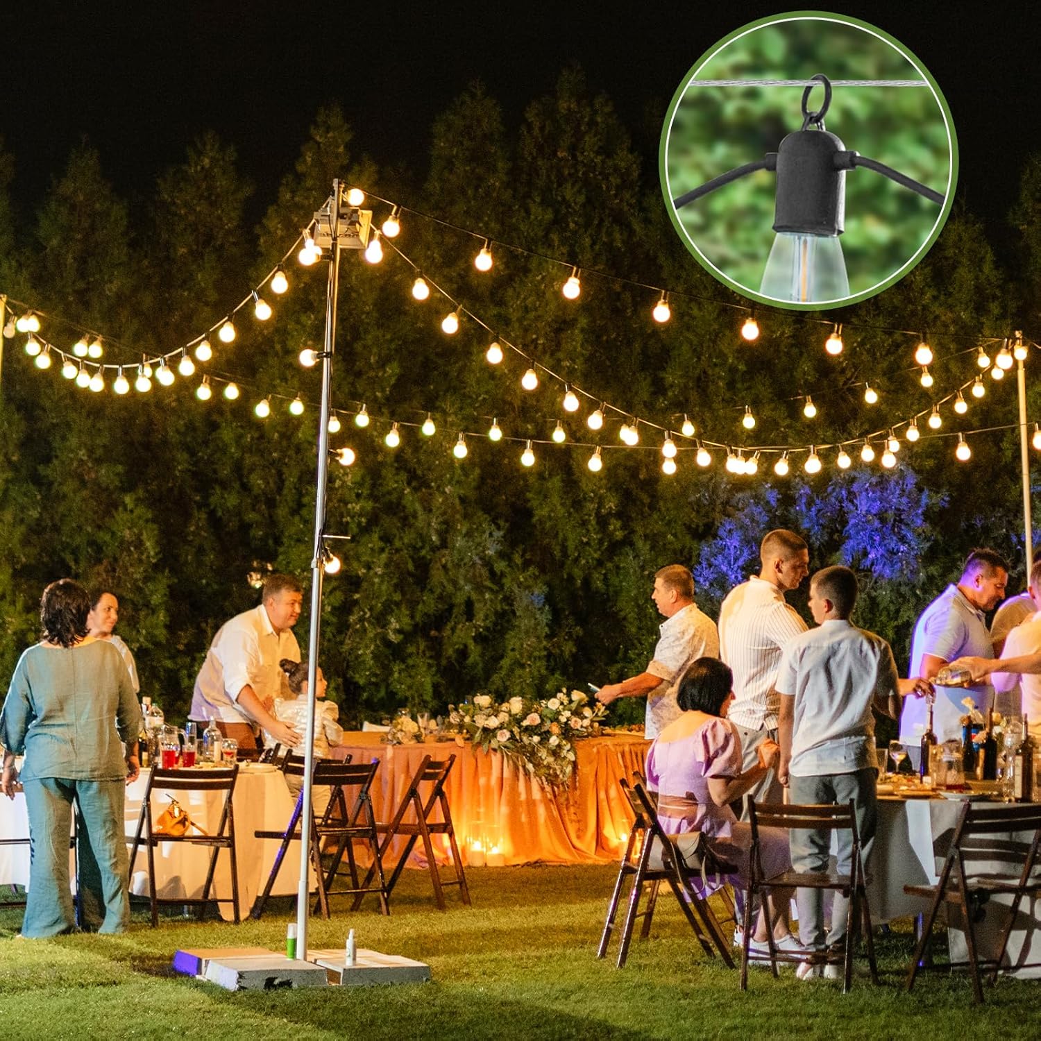 - High Strength Steel Cable: Once tightened, the steel cable is strong enough with a maximum load capacity of 500 pounds and a tensile strength of 180 pounds. It can easily support heavy-duty light strings in large open spaces and prevent commercial light strings from sagging in small pubs. It's practical for hanging large items like quilts for drying.